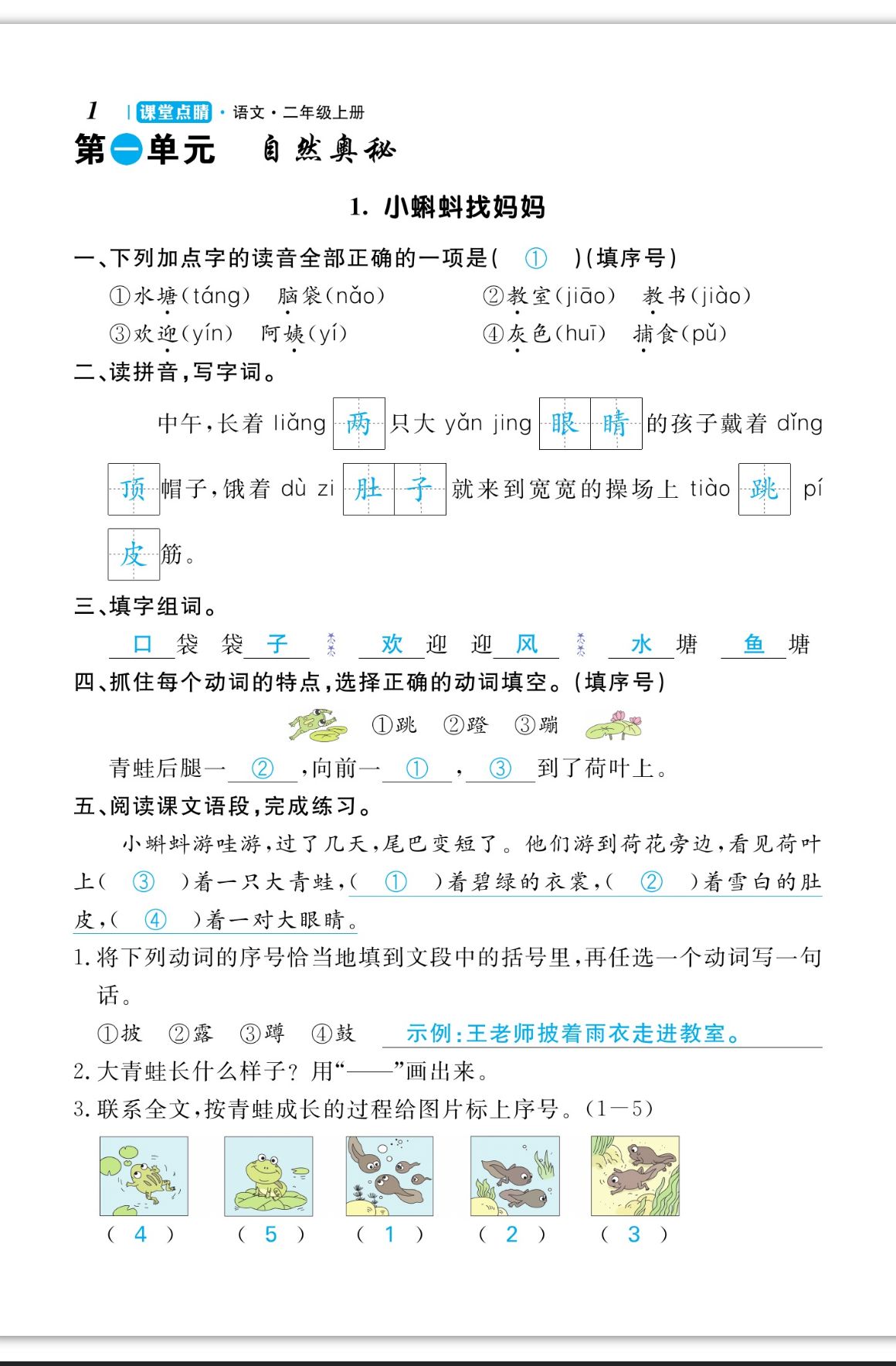 注:目前有些书本章节名称可能整理的还不是很完善,但都是按照顺序排列的,请同学们按照顺序仔细查找。练习册 2023年课堂点睛二年级语文上册人教版福建专版 答案主要是用来给同学们做完题方便对答案用的,请勿直接抄袭。