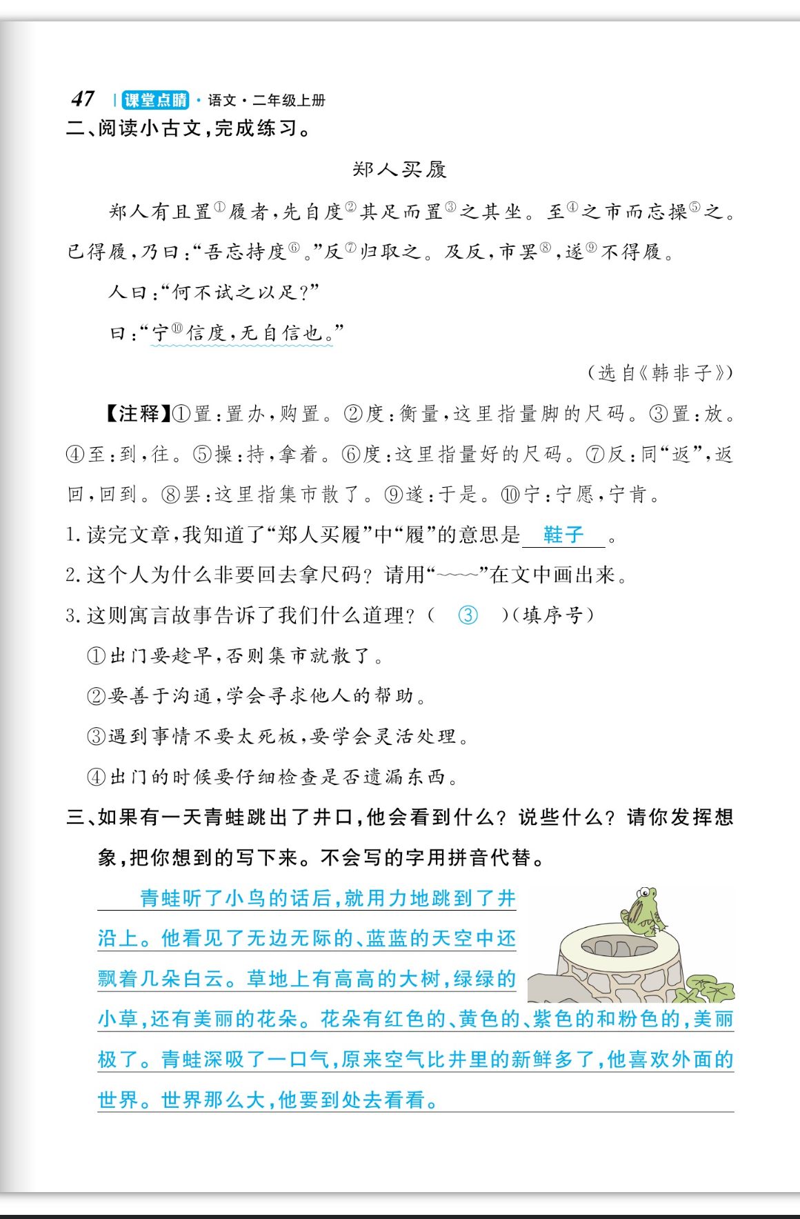 注:目前有些书本章节名称可能整理的还不是很完善,但都是按照顺序排列的,请同学们按照顺序仔细查找。练习册 2023年课堂点睛二年级语文上册人教版福建专版 答案主要是用来给同学们做完题方便对答案用的,请勿直接抄袭。