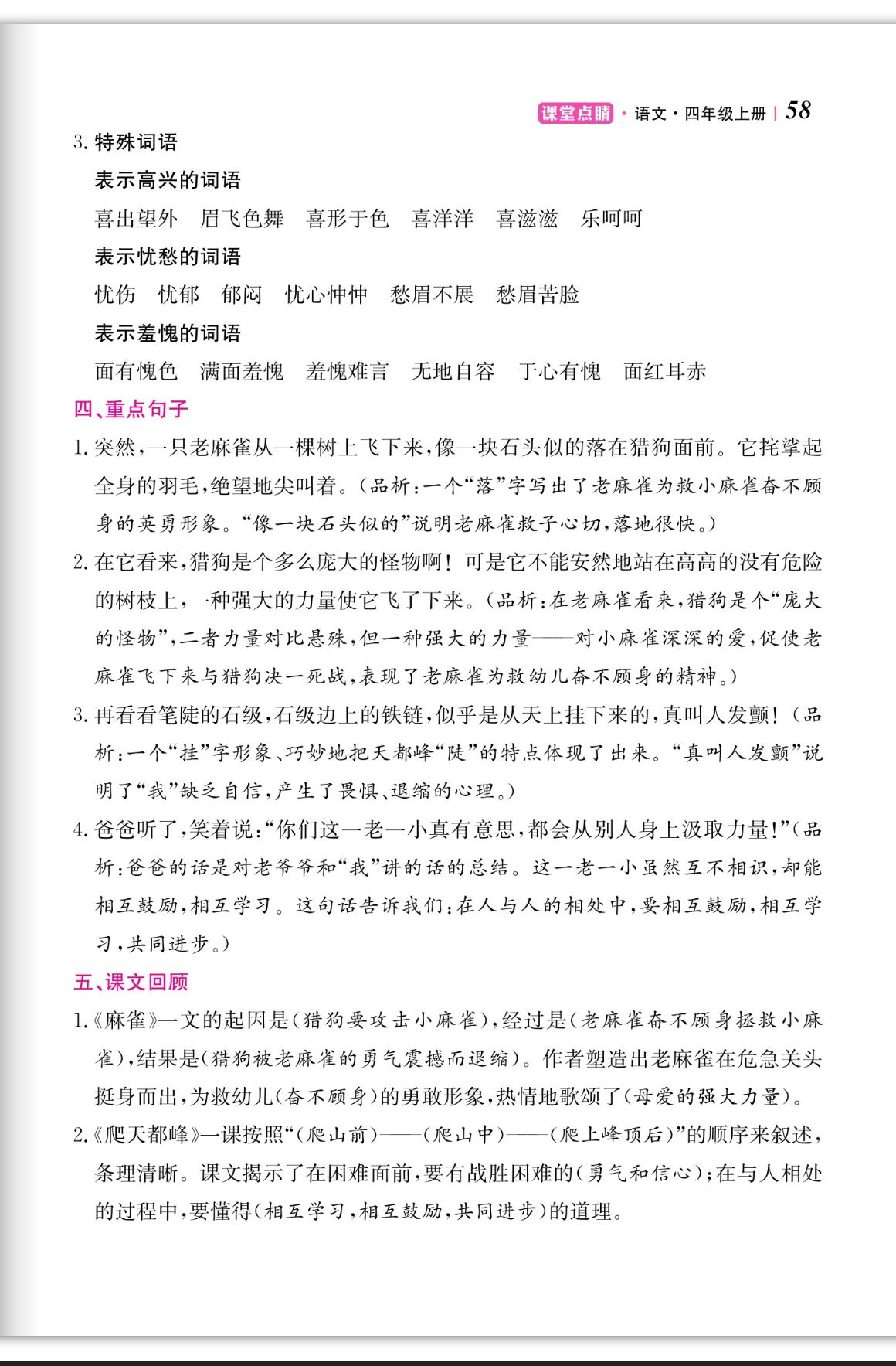 《2023年课堂点睛四年级语文上册人教版福建专版》