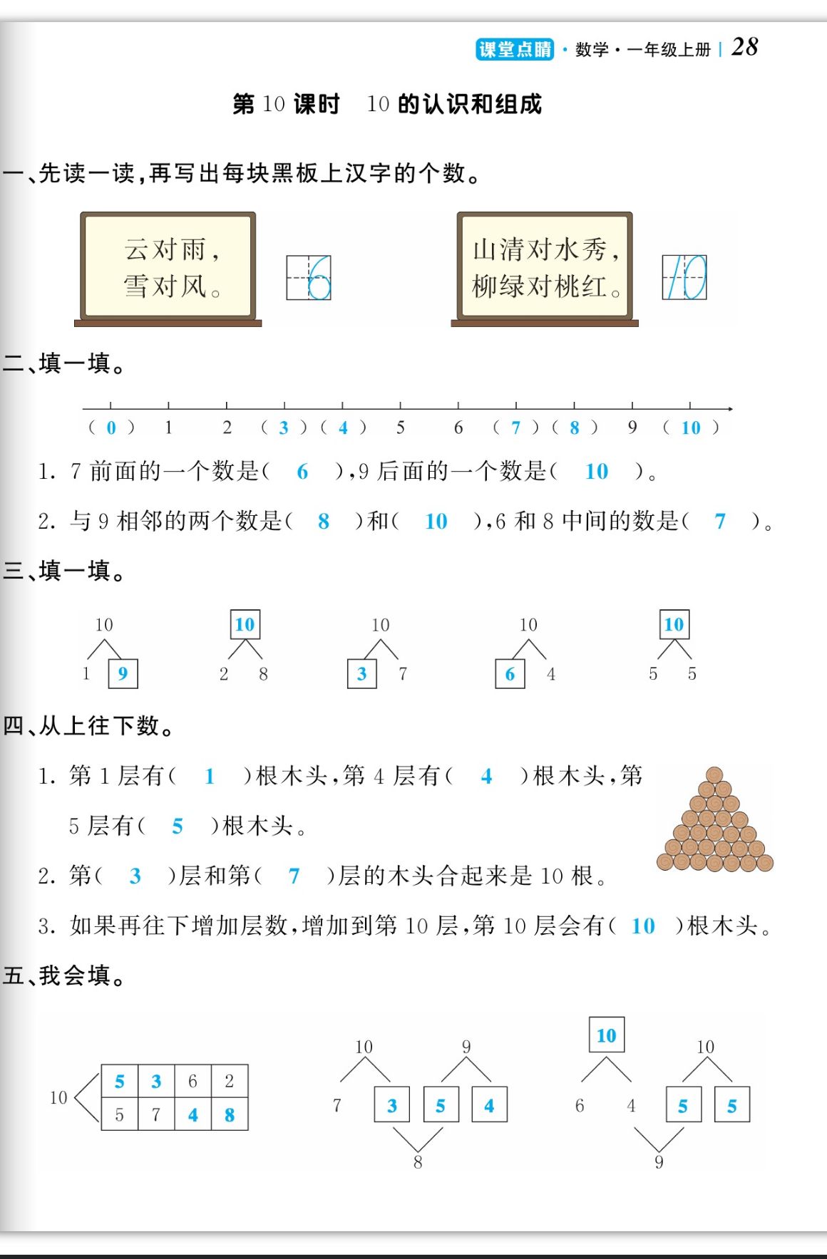 注:目前有些书本章节名称可能整理的还不是很完善,但都是按照顺序排列的,请同学们按照顺序仔细查找。练习册 2023年课堂点睛一年级数学上册人教版 答案主要是用来给同学们做完题方便对答案用的,请勿直接抄袭。