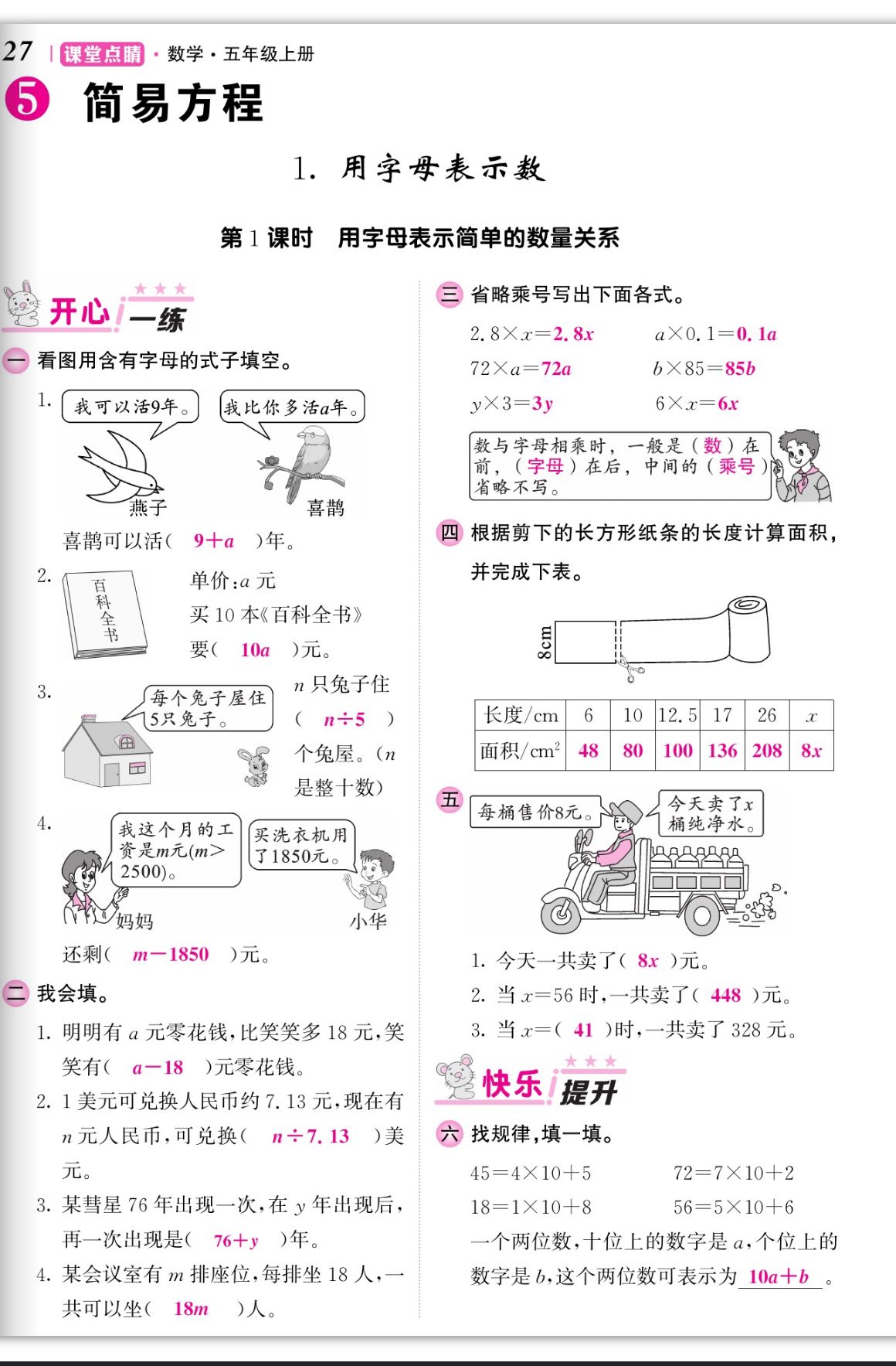 注:目前有些书本章节名称可能整理的还不是很完善,但都是按照顺序排列的,请同学们按照顺序仔细查找。练习册 2023年课堂点睛五年级数学上册人教版 答案主要是用来给同学们做完题方便对答案用的,请勿直接抄袭。