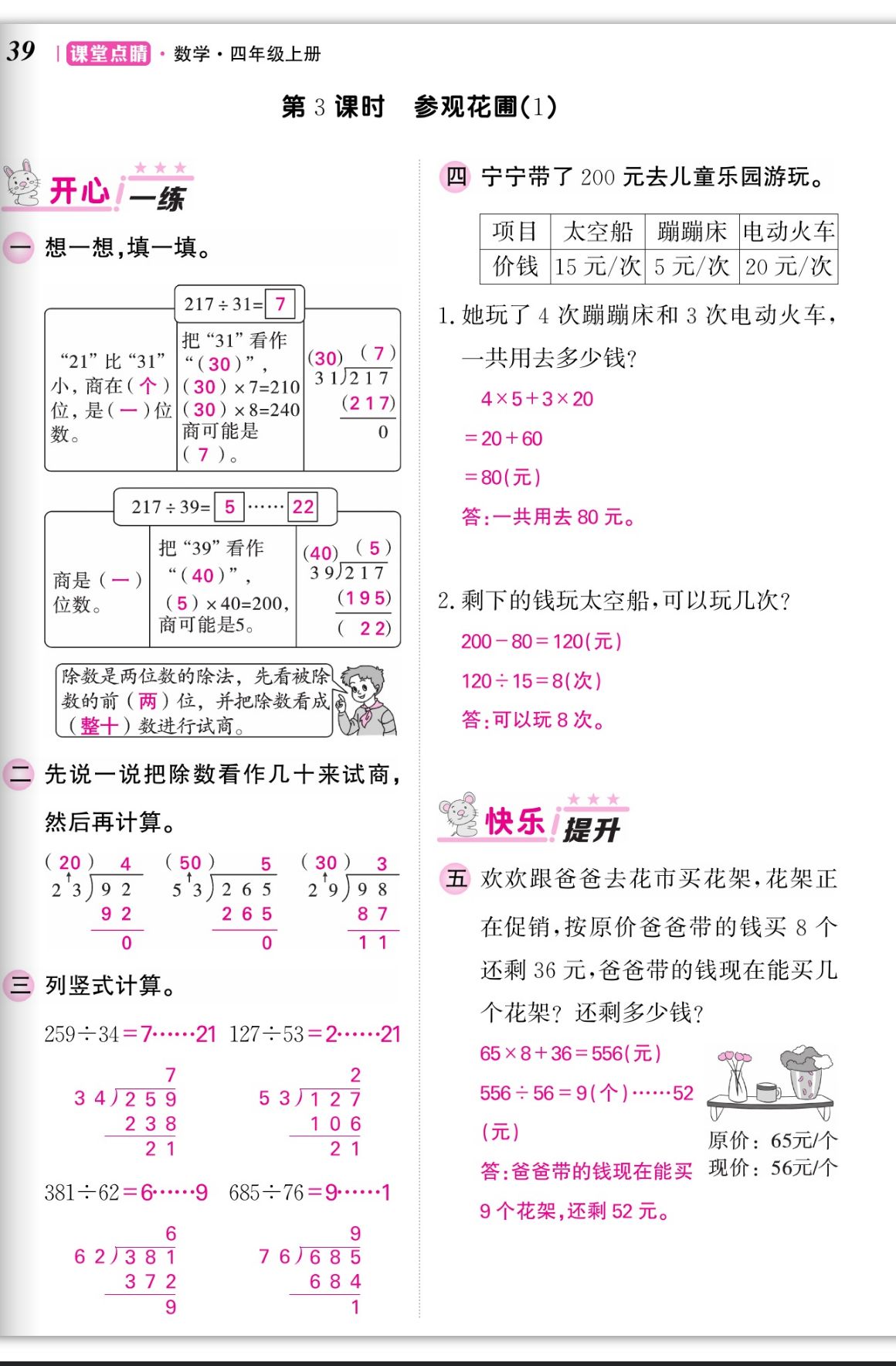 注:目前有些书本章节名称可能整理的还不是很完善,但都是按照顺序排列的,请同学们按照顺序仔细查找。练习册 2023年课堂点睛四年级数学上册北师大版 答案主要是用来给同学们做完题方便对答案用的,请勿直接抄袭。