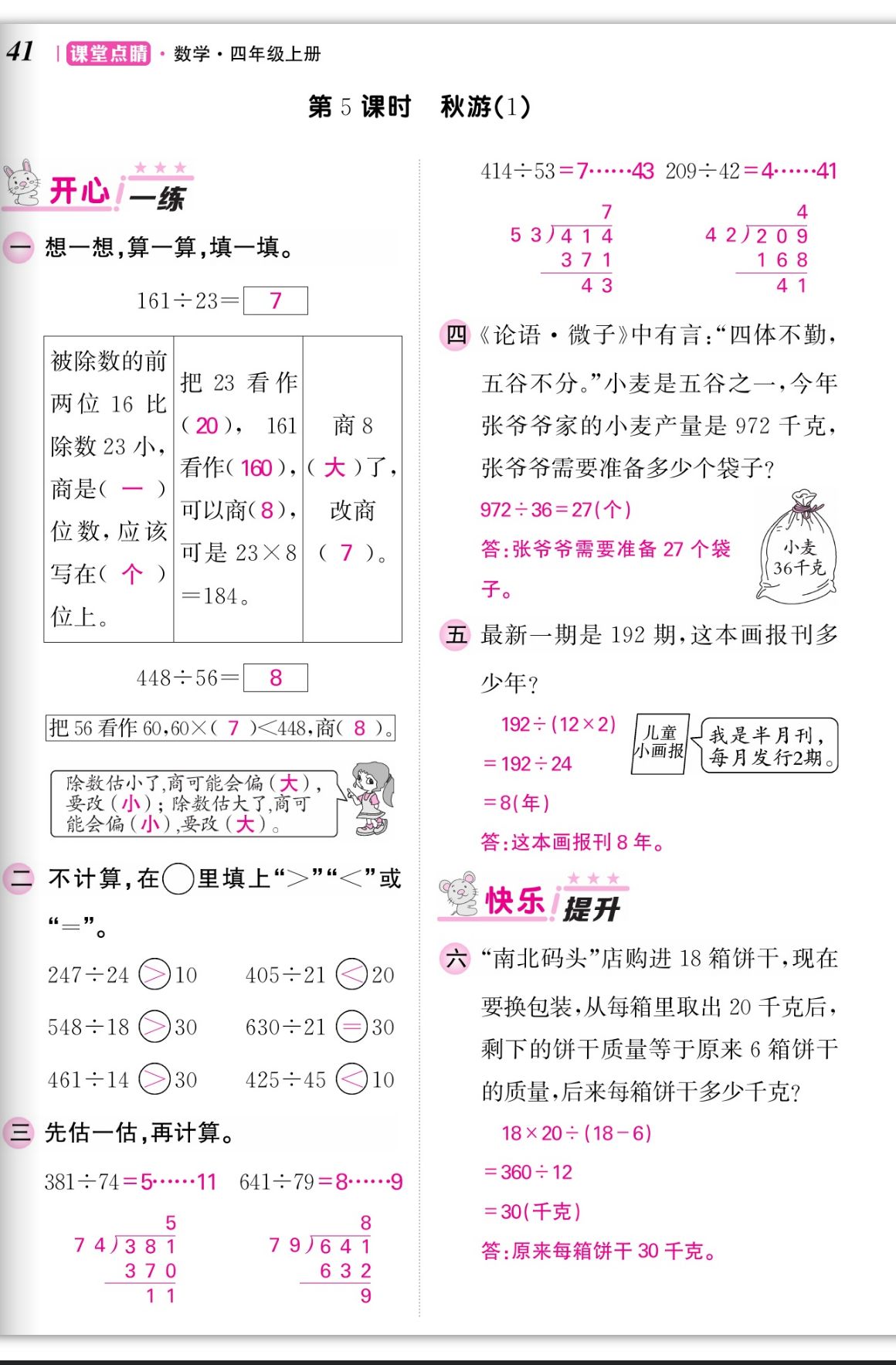 注:目前有些书本章节名称可能整理的还不是很完善,但都是按照顺序排列的,请同学们按照顺序仔细查找。练习册 2023年课堂点睛四年级数学上册北师大版 答案主要是用来给同学们做完题方便对答案用的,请勿直接抄袭。