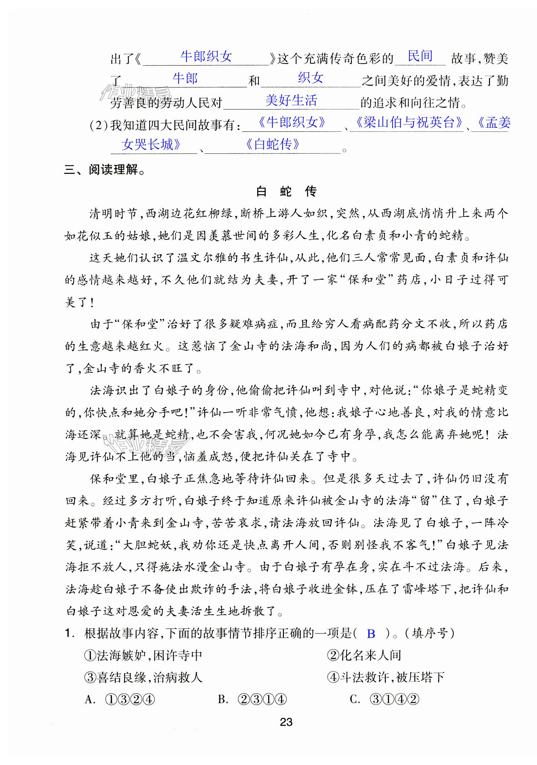 注:目前有些书本章节名称可能整理的还不是很完善,但都是按照顺序排列的,请同学们按照顺序仔细查找。练习册 2023年同步练习册配套单元自测试卷五年级语文上册人教版 答案主要是用来给同学们做完题方便对答案用的,请勿直接抄袭。