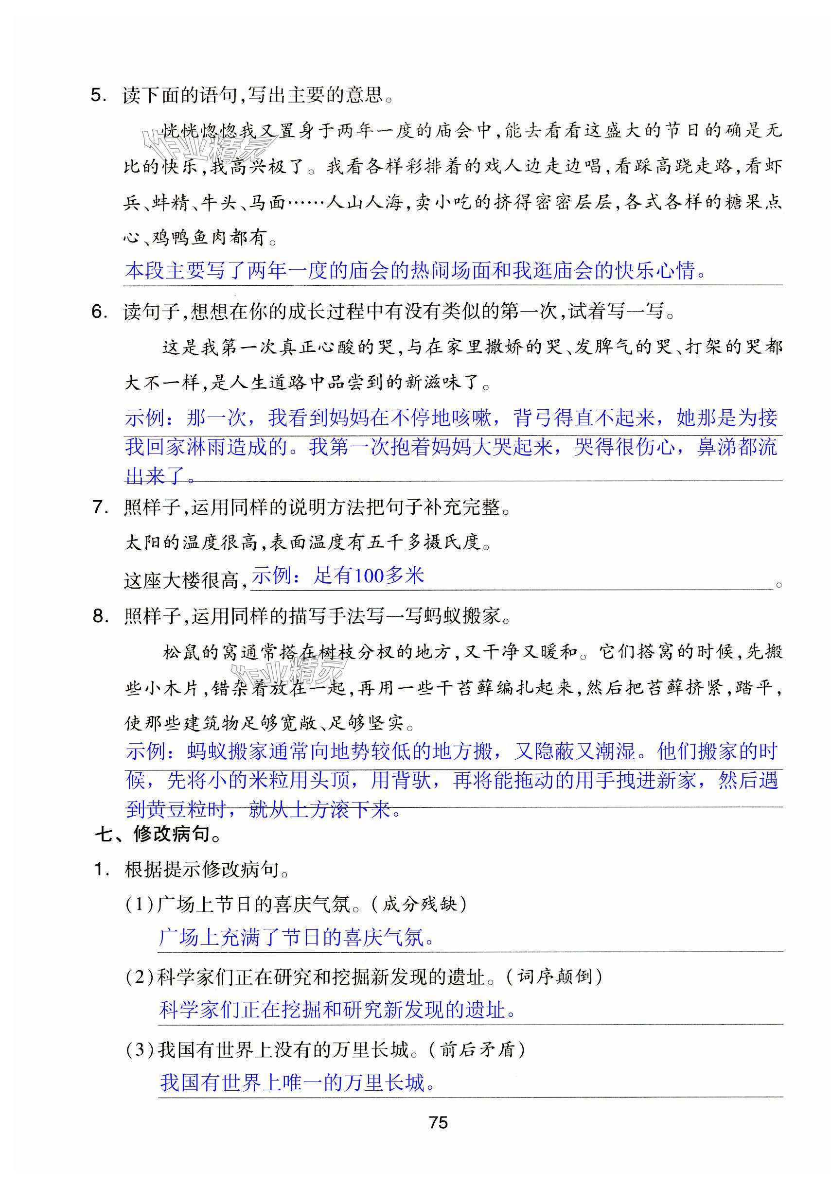注:目前有些书本章节名称可能整理的还不是很完善,但都是按照顺序排列的,请同学们按照顺序仔细查找。练习册 2023年同步练习册配套单元自测试卷五年级语文上册人教版 答案主要是用来给同学们做完题方便对答案用的,请勿直接抄袭。