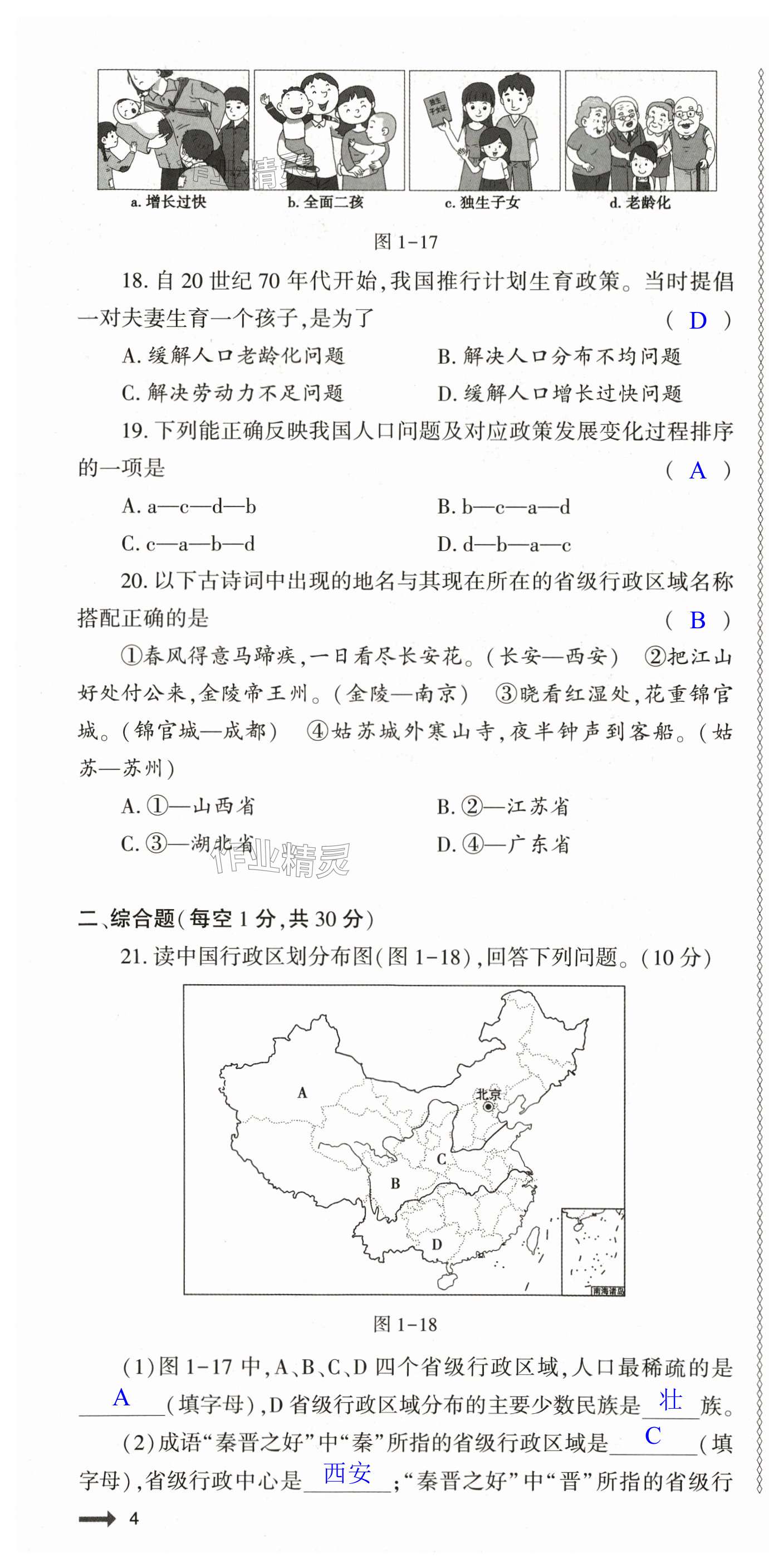 注:目前有些书本章节名称可能整理的还不是很完善,但都是按照顺序排列的,请同学们按照顺序仔细查找。练习册 2023年节节高大象出版社八年级地理全一册地图版 答案主要是用来给同学们做完题方便对答案用的,请勿直接抄袭。