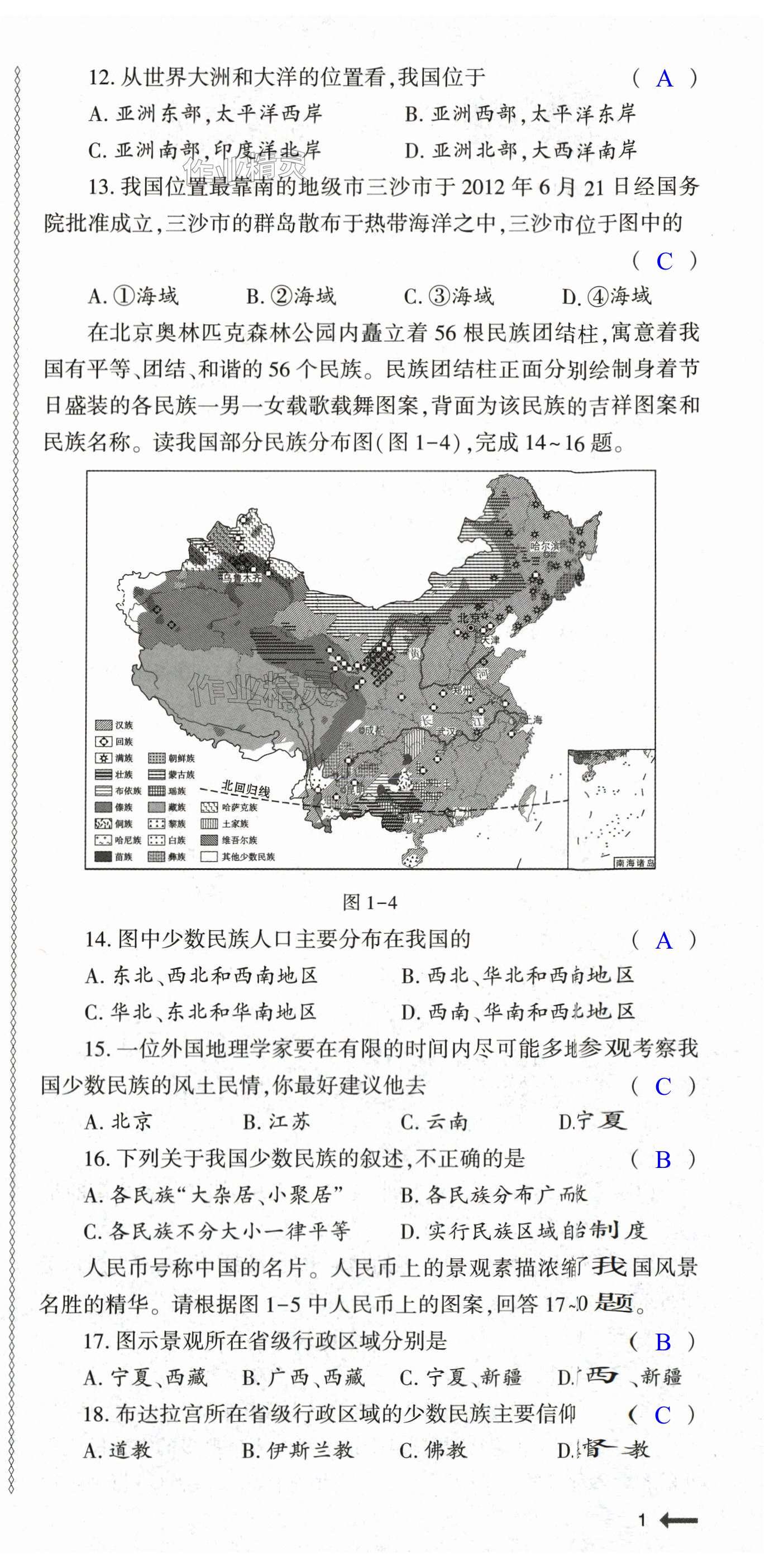 注:目前有些书本章节名称可能整理的还不是很完善,但都是按照顺序排列的,请同学们按照顺序仔细查找。练习册 2023年节节高大象出版社八年级地理全一册地图版 答案主要是用来给同学们做完题方便对答案用的,请勿直接抄袭。