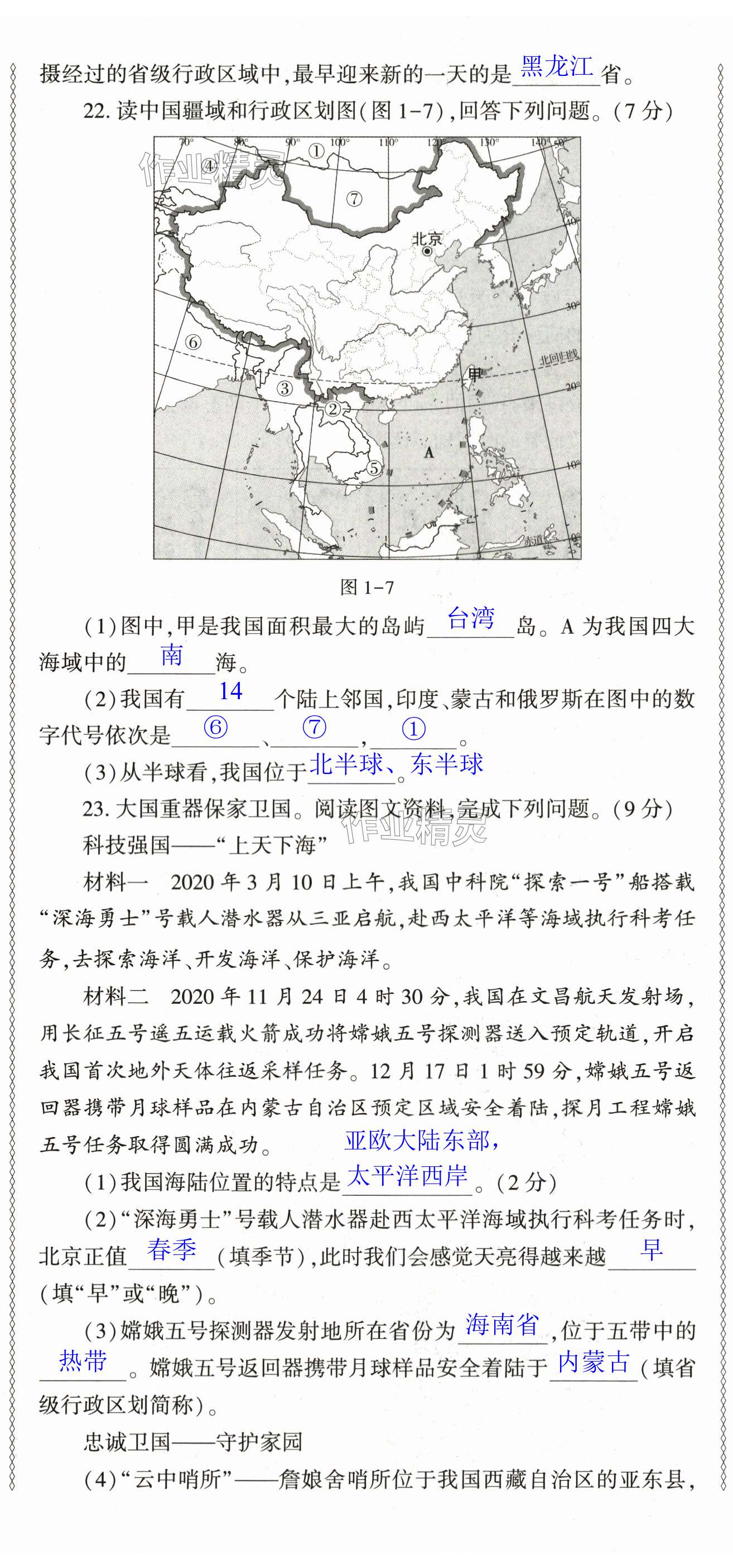 注:目前有些书本章节名称可能整理的还不是很完善,但都是按照顺序排列的,请同学们按照顺序仔细查找。练习册 2023年节节高大象出版社八年级地理全一册地图版 答案主要是用来给同学们做完题方便对答案用的,请勿直接抄袭。