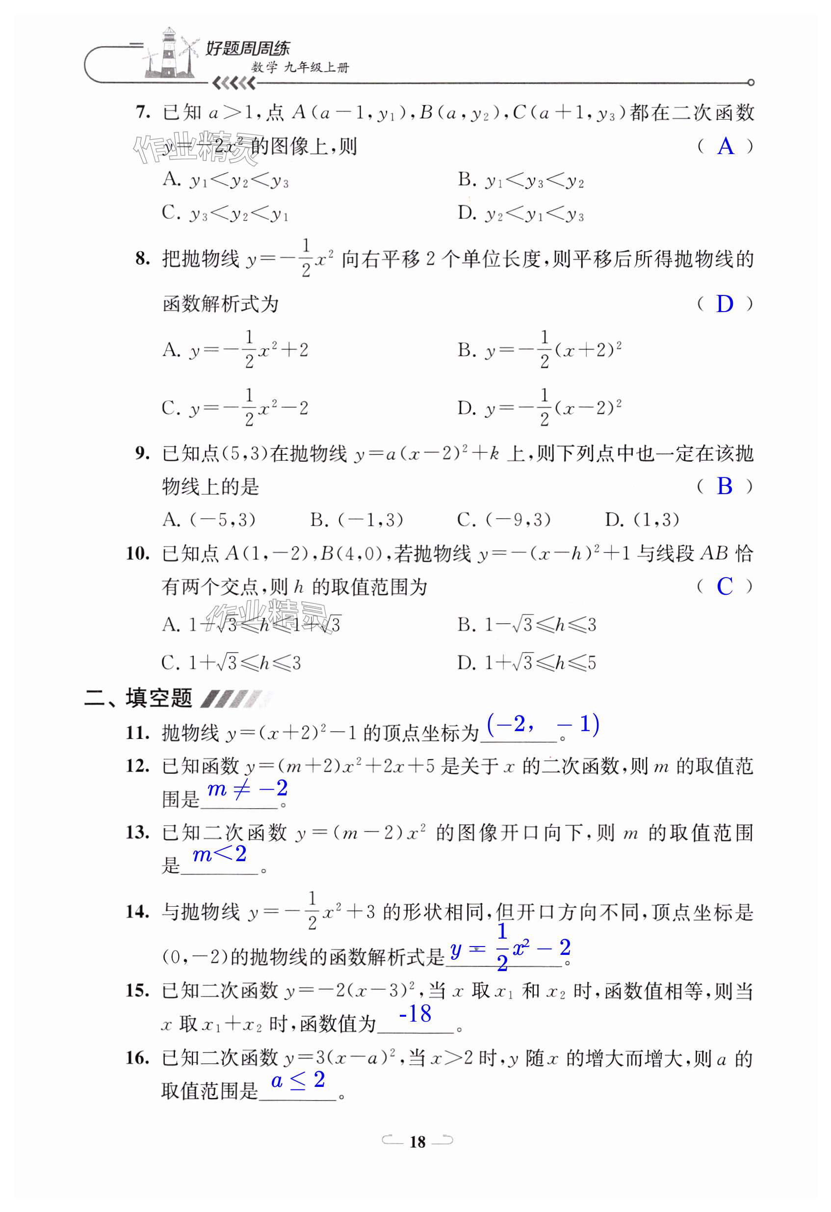 注:目前有些书本章节名称可能整理的还不是很完善,但都是按照顺序排列的,请同学们按照顺序仔细查找。练习册 2023年好题周周练九年级数学上册人教版 答案主要是用来给同学们做完题方便对答案用的,请勿直接抄袭。