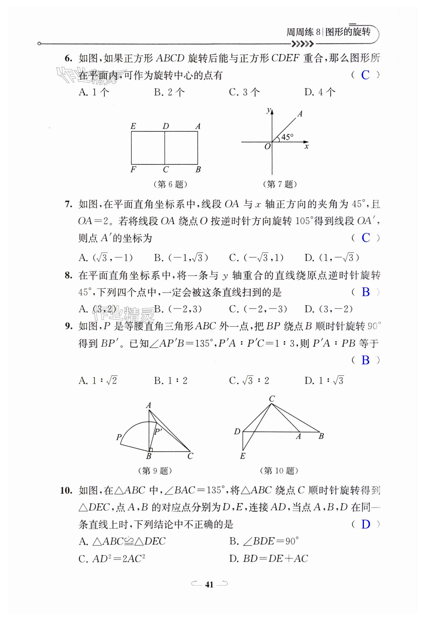 注:目前有些书本章节名称可能整理的还不是很完善,但都是按照顺序排列的,请同学们按照顺序仔细查找。练习册 2023年好题周周练九年级数学上册人教版 答案主要是用来给同学们做完题方便对答案用的,请勿直接抄袭。
