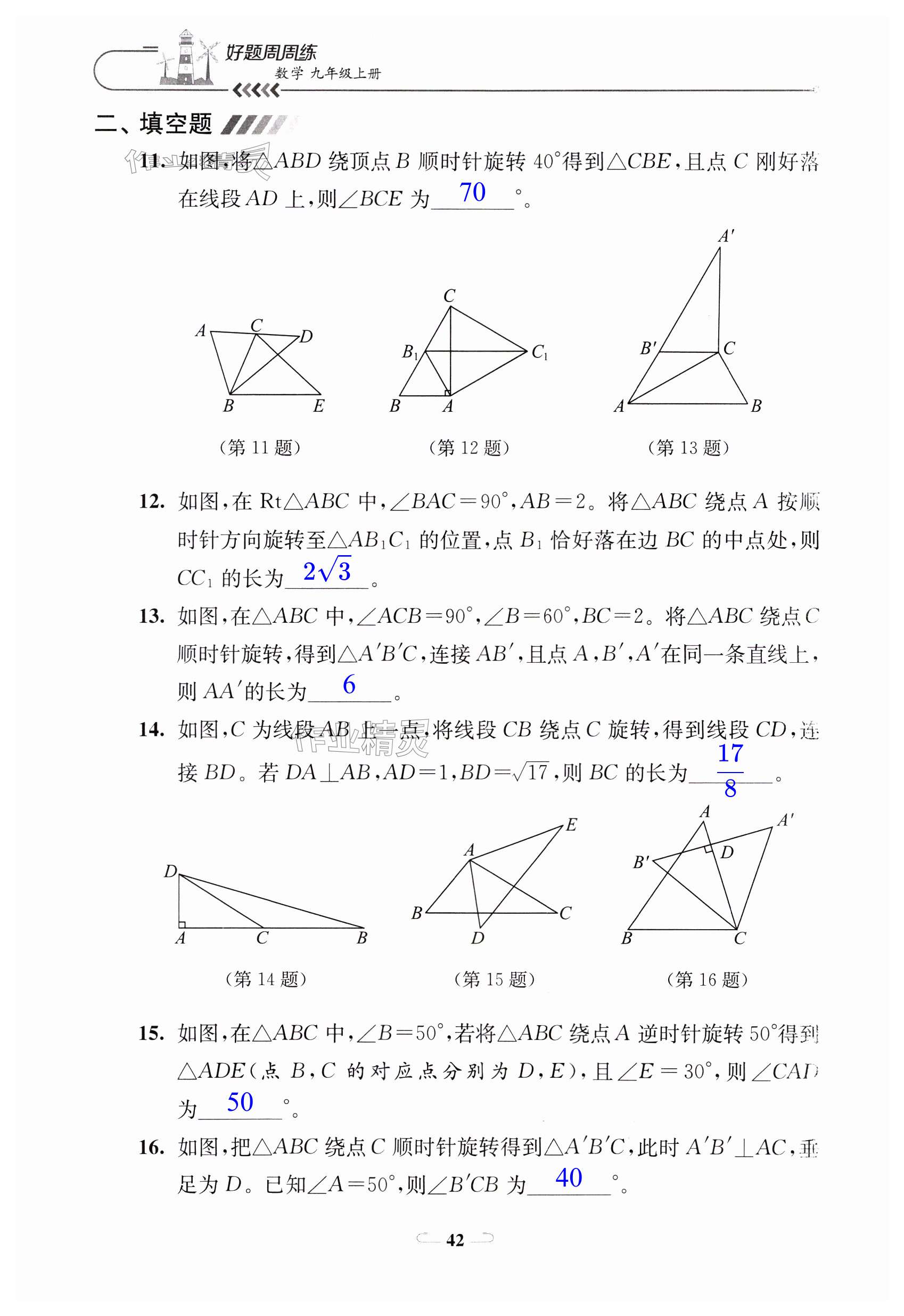 注:目前有些书本章节名称可能整理的还不是很完善,但都是按照顺序排列的,请同学们按照顺序仔细查找。练习册 2023年好题周周练九年级数学上册人教版 答案主要是用来给同学们做完题方便对答案用的,请勿直接抄袭。