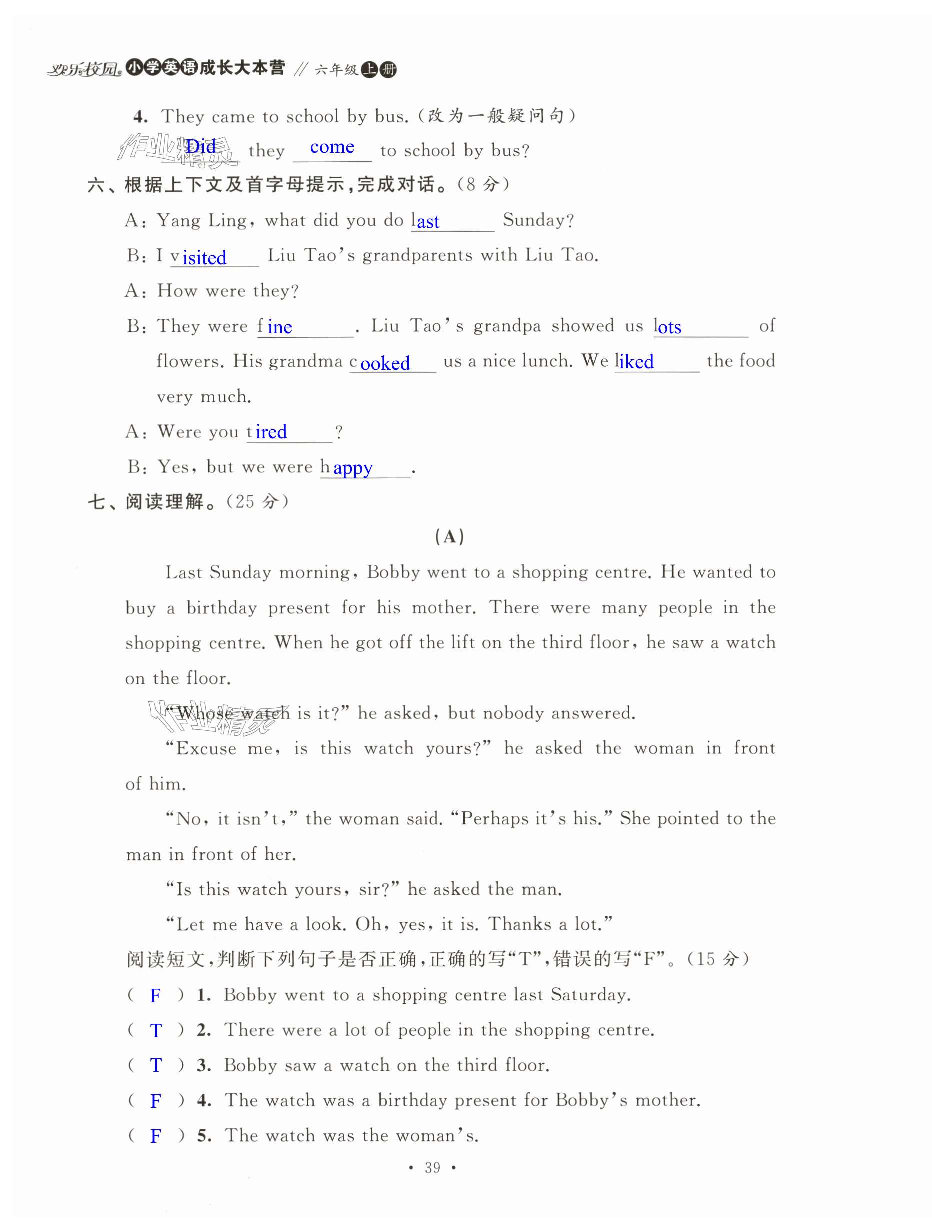 注:目前有些书本章节名称可能整理的还不是很完善,但都是按照顺序排列的,请同学们按照顺序仔细查找。练习册 2023年欢乐校园成长大本营六年级英语上册译林版 答案主要是用来给同学们做完题方便对答案用的,请勿直接抄袭。