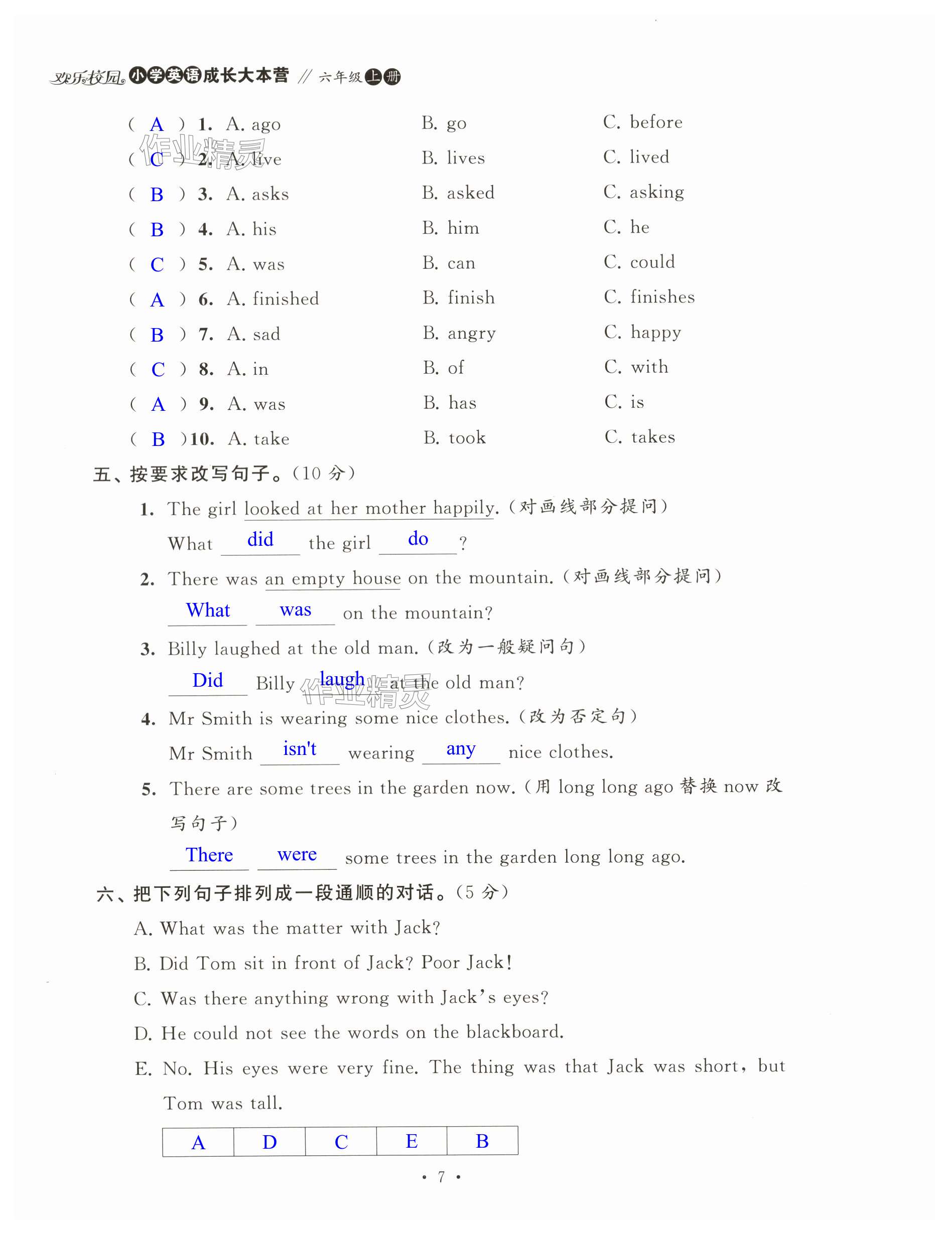 注:目前有些书本章节名称可能整理的还不是很完善,但都是按照顺序排列的,请同学们按照顺序仔细查找。练习册 2023年欢乐校园成长大本营六年级英语上册译林版 答案主要是用来给同学们做完题方便对答案用的,请勿直接抄袭。