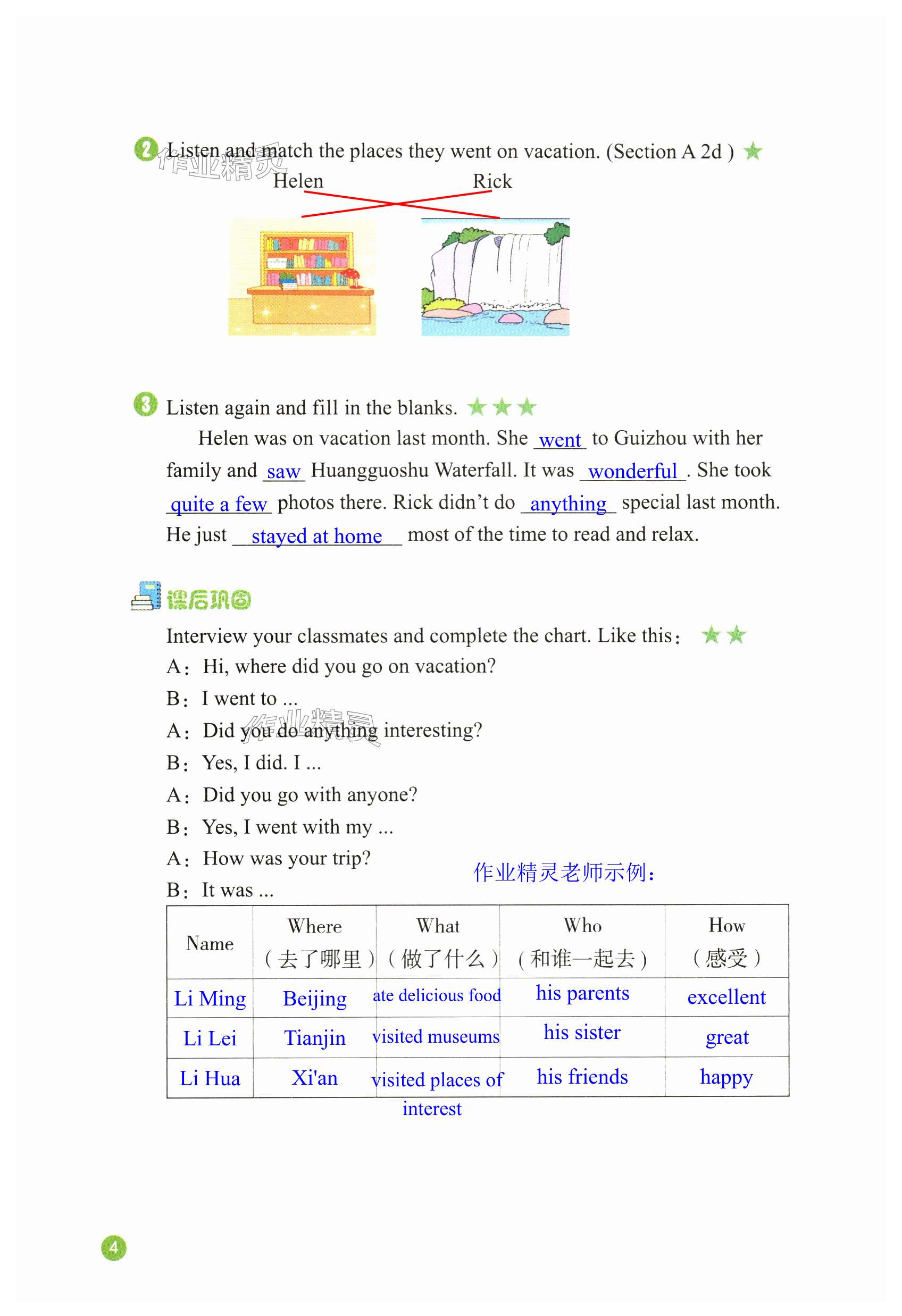 注:目前有些书本章节名称可能整理的还不是很完善,但都是按照顺序排列的,请同学们按照顺序仔细查找。练习册 2023年英语听力中国言实出版社八年级人教版 答案主要是用来给同学们做完题方便对答案用的,请勿直接抄袭。
