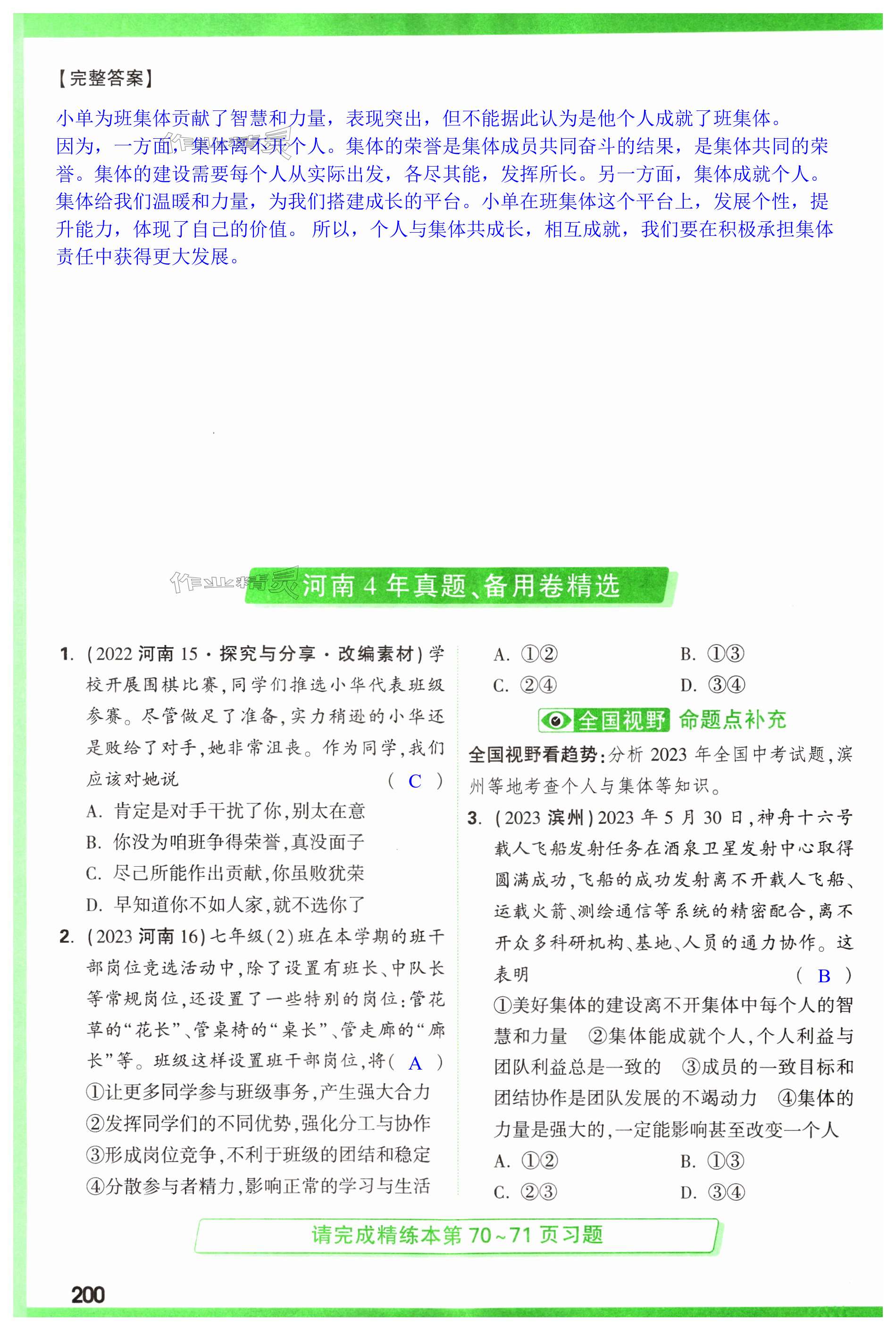 注:目前有些书本章节名称可能整理的还不是很完善,但都是按照顺序排列的,请同学们按照顺序仔细查找。练习册 2024年万唯中考试题研究道德与法治河南专版 答案主要是用来给同学们做完题方便对答案用的,请勿直接抄袭。
