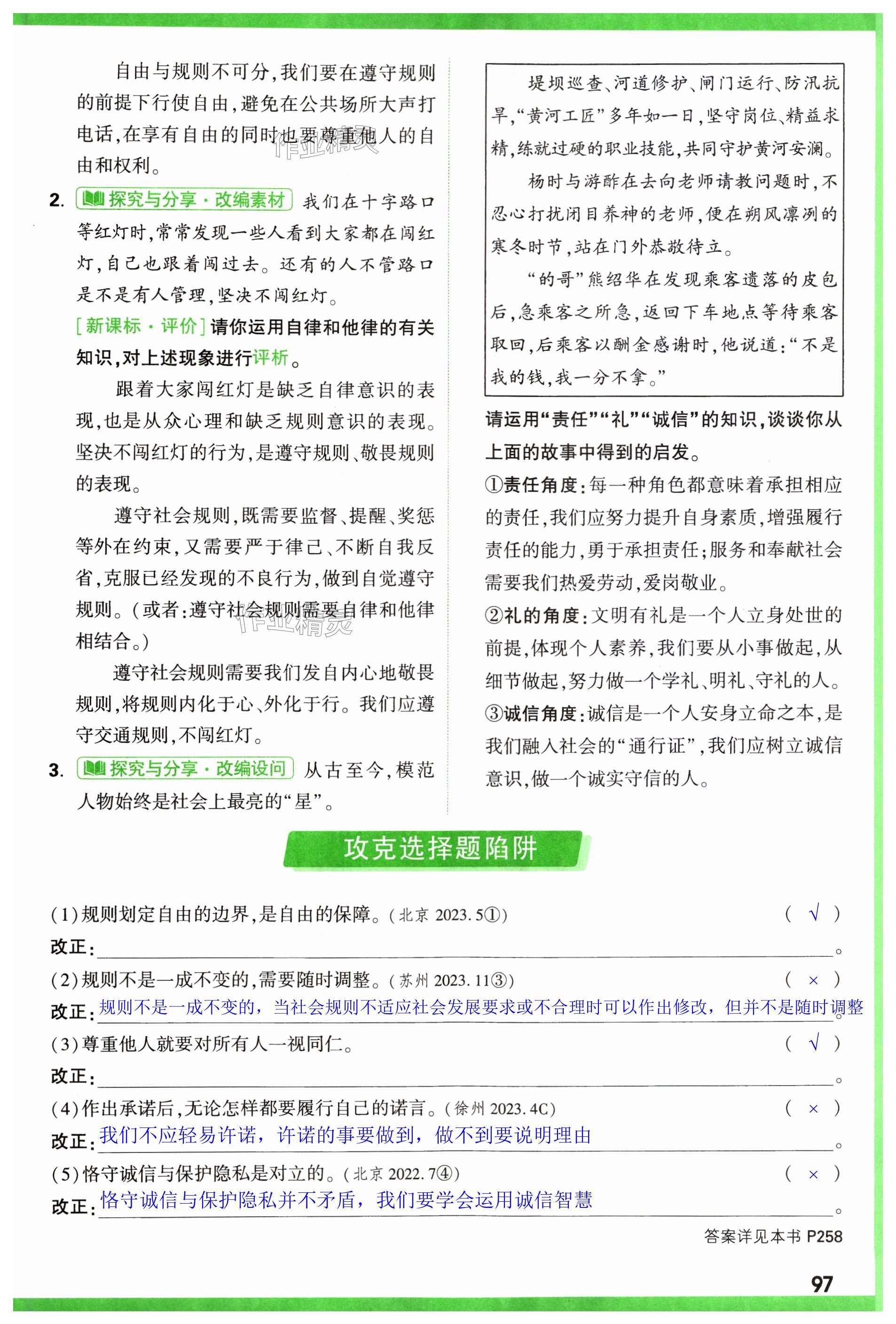 注:目前有些书本章节名称可能整理的还不是很完善,但都是按照顺序排列的,请同学们按照顺序仔细查找。练习册 2024年万唯中考试题研究道德与法治河南专版 答案主要是用来给同学们做完题方便对答案用的,请勿直接抄袭。