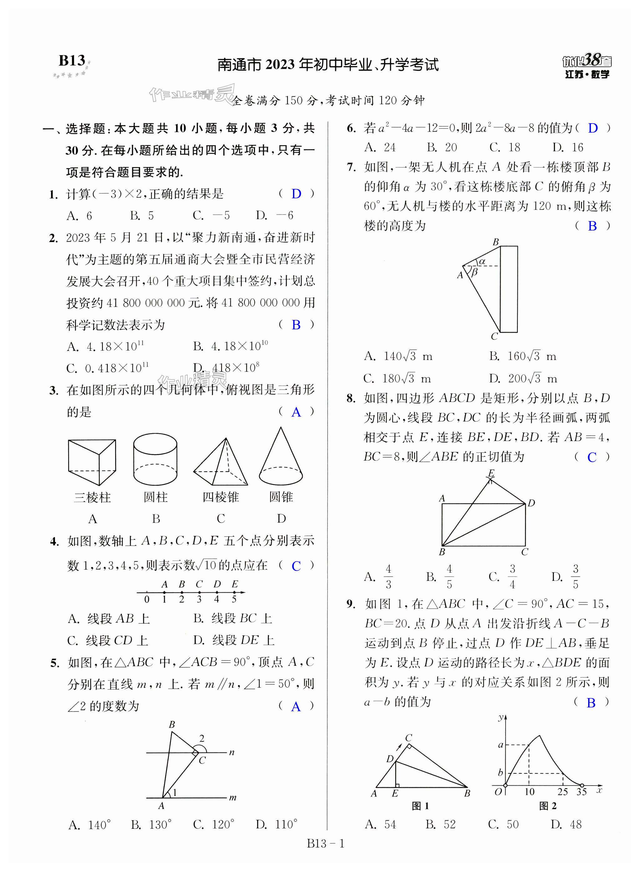 注:目前有些书本章节名称可能整理的还不是很完善,但都是按照顺序排列的,请同学们按照顺序仔细查找。练习册 2024年江苏中考模拟试卷汇编优化38套数学提优版 答案主要是用来给同学们做完题方便对答案用的,请勿直接抄袭。