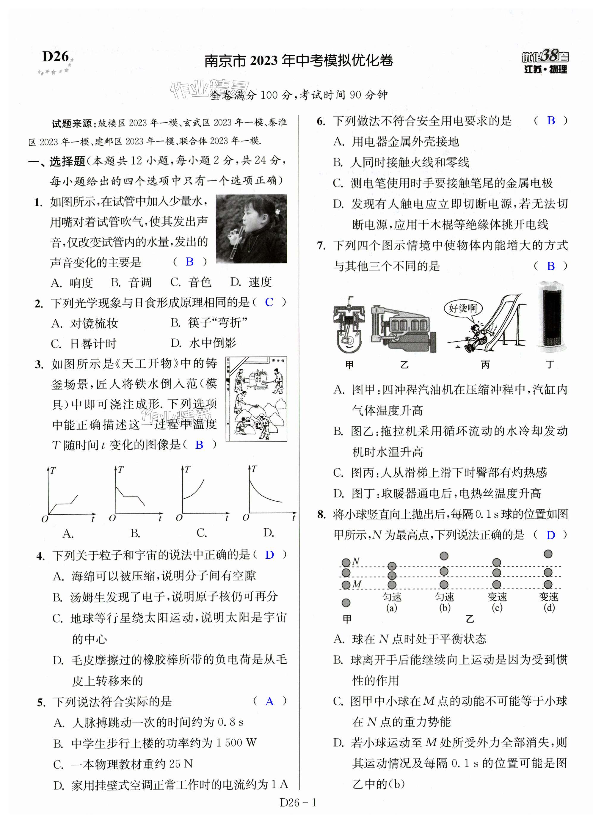 2024年江苏中考模拟试卷汇编优化38套物理提优版