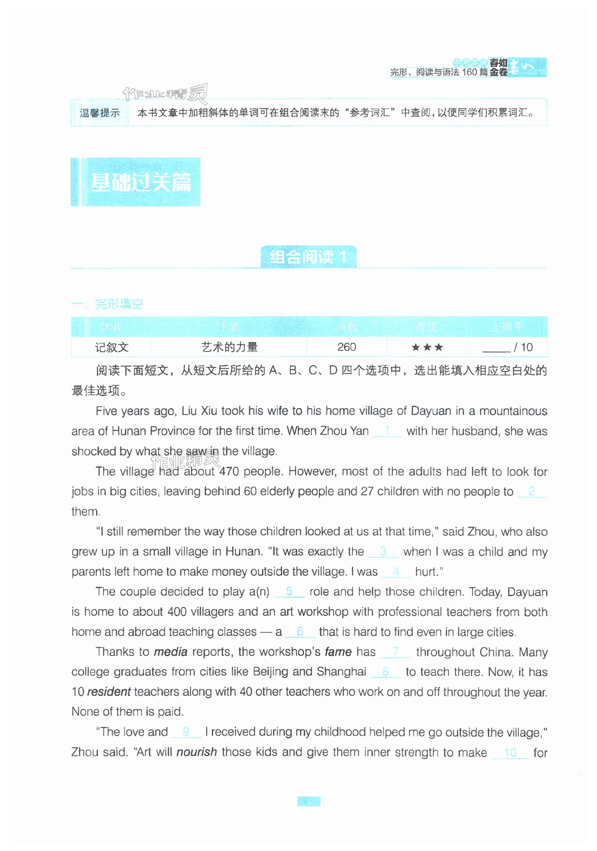 《2024年春如金卷英语中考完形阅读与语法160篇》