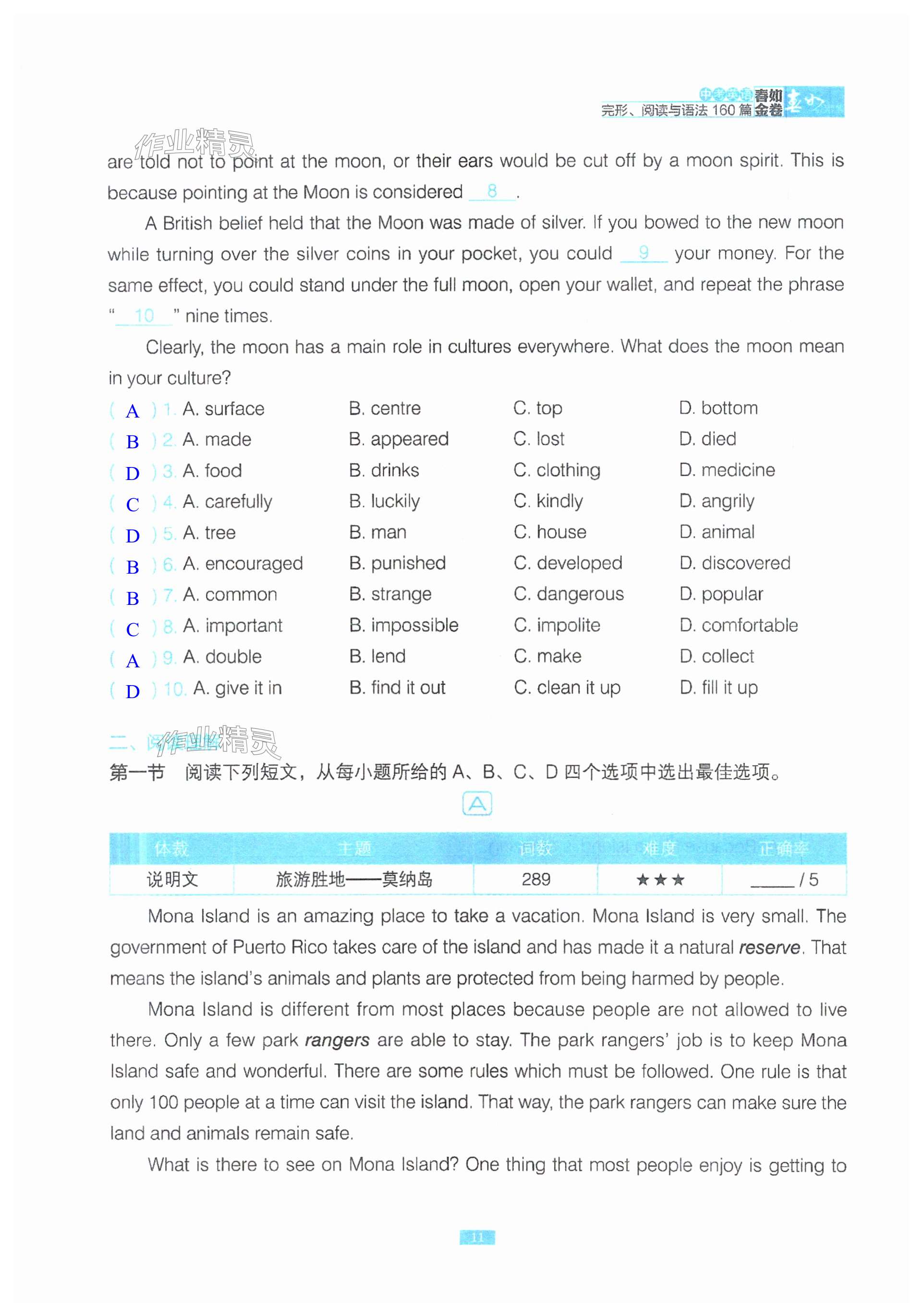 注:目前有些书本章节名称可能整理的还不是很完善,但都是按照顺序排列的,请同学们按照顺序仔细查找。练习册 2024年春如金卷英语中考完形阅读与语法160篇 答案主要是用来给同学们做完题方便对答案用的,请勿直接抄袭。