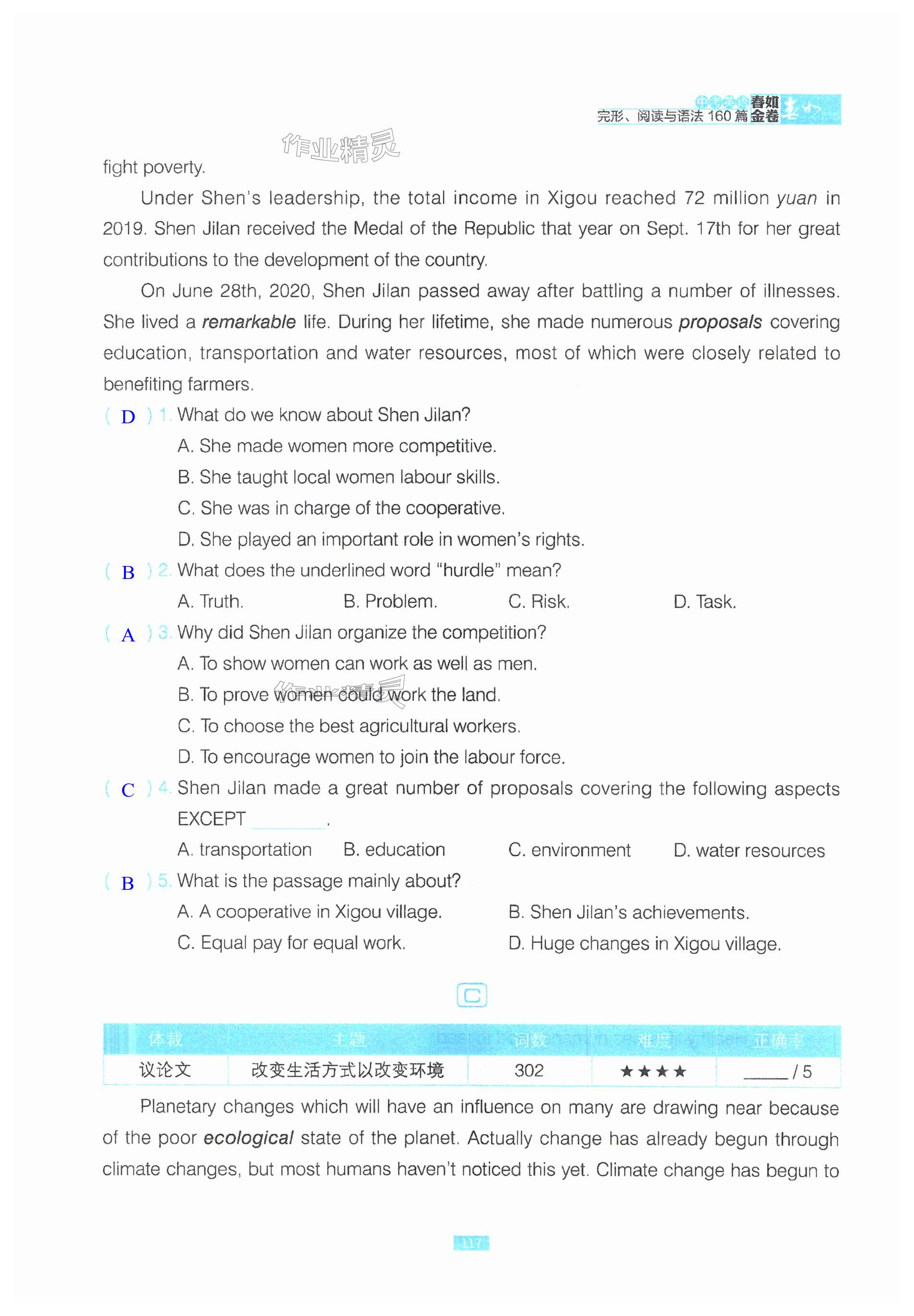 注:目前有些书本章节名称可能整理的还不是很完善,但都是按照顺序排列的,请同学们按照顺序仔细查找。练习册 2024年春如金卷英语中考完形阅读与语法160篇 答案主要是用来给同学们做完题方便对答案用的,请勿直接抄袭。