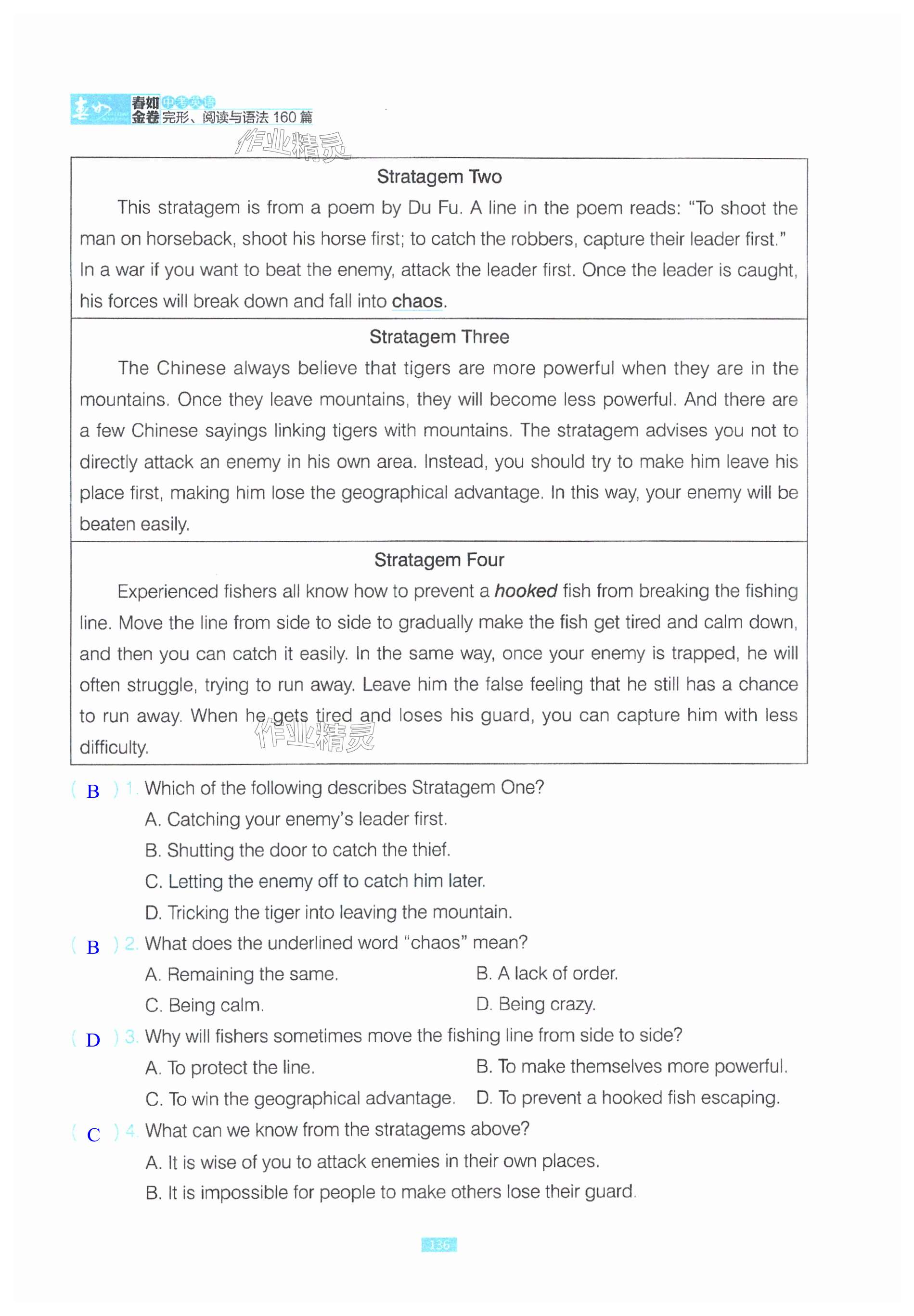 注:目前有些书本章节名称可能整理的还不是很完善,但都是按照顺序排列的,请同学们按照顺序仔细查找。练习册 2024年春如金卷英语中考完形阅读与语法160篇 答案主要是用来给同学们做完题方便对答案用的,请勿直接抄袭。