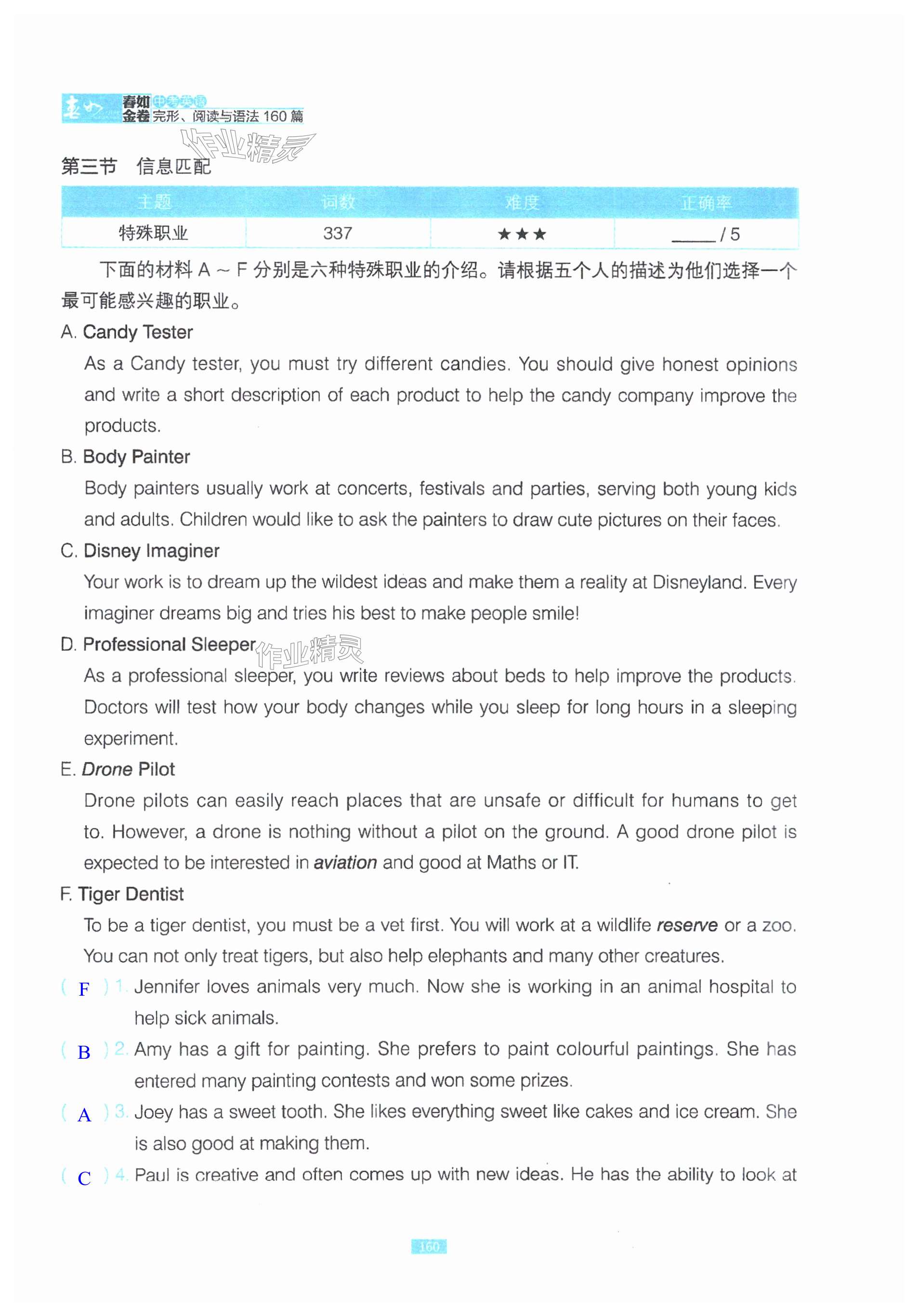 注:目前有些书本章节名称可能整理的还不是很完善,但都是按照顺序排列的,请同学们按照顺序仔细查找。练习册 2024年春如金卷英语中考完形阅读与语法160篇 答案主要是用来给同学们做完题方便对答案用的,请勿直接抄袭。
