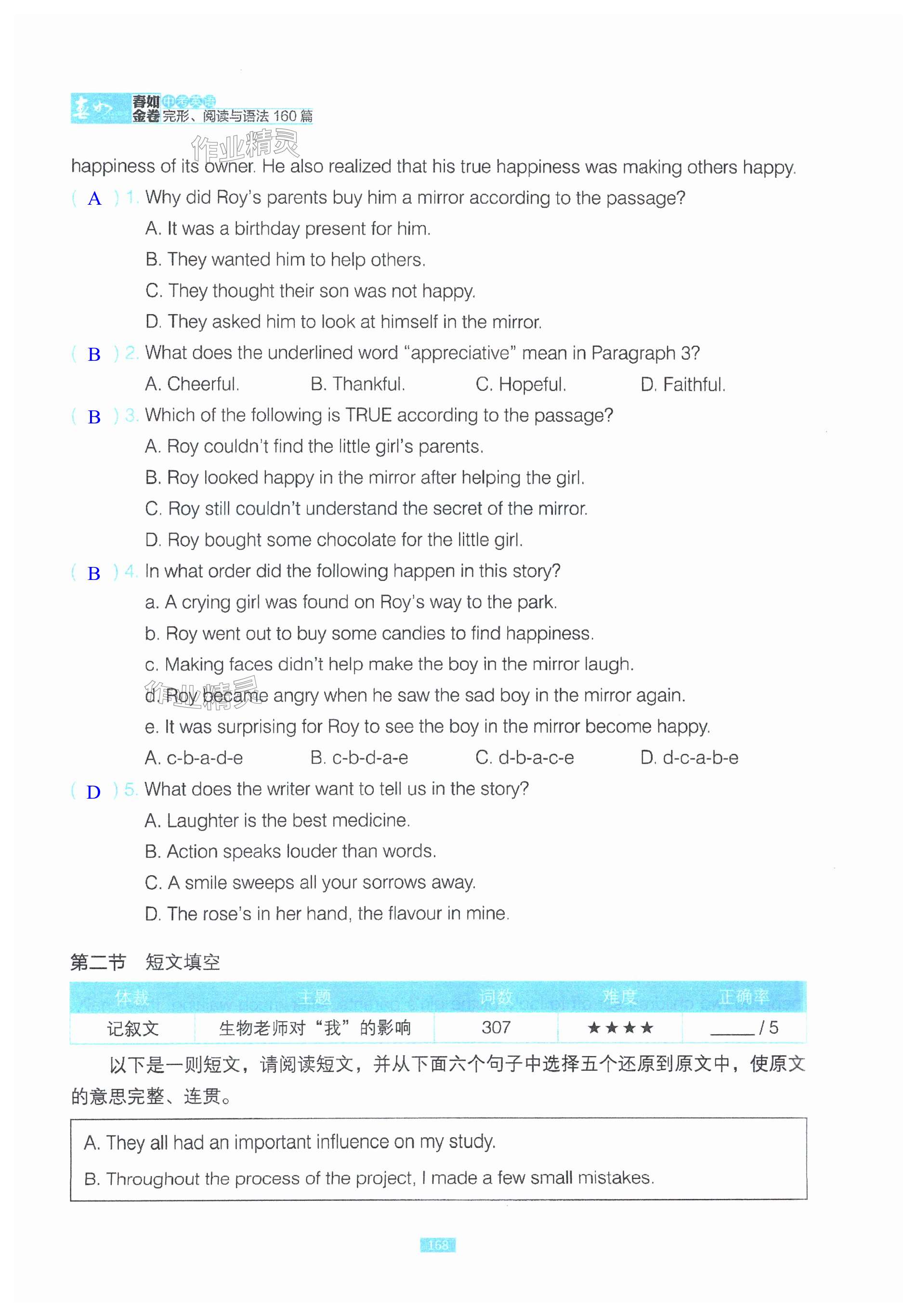 注:目前有些书本章节名称可能整理的还不是很完善,但都是按照顺序排列的,请同学们按照顺序仔细查找。练习册 2024年春如金卷英语中考完形阅读与语法160篇 答案主要是用来给同学们做完题方便对答案用的,请勿直接抄袭。