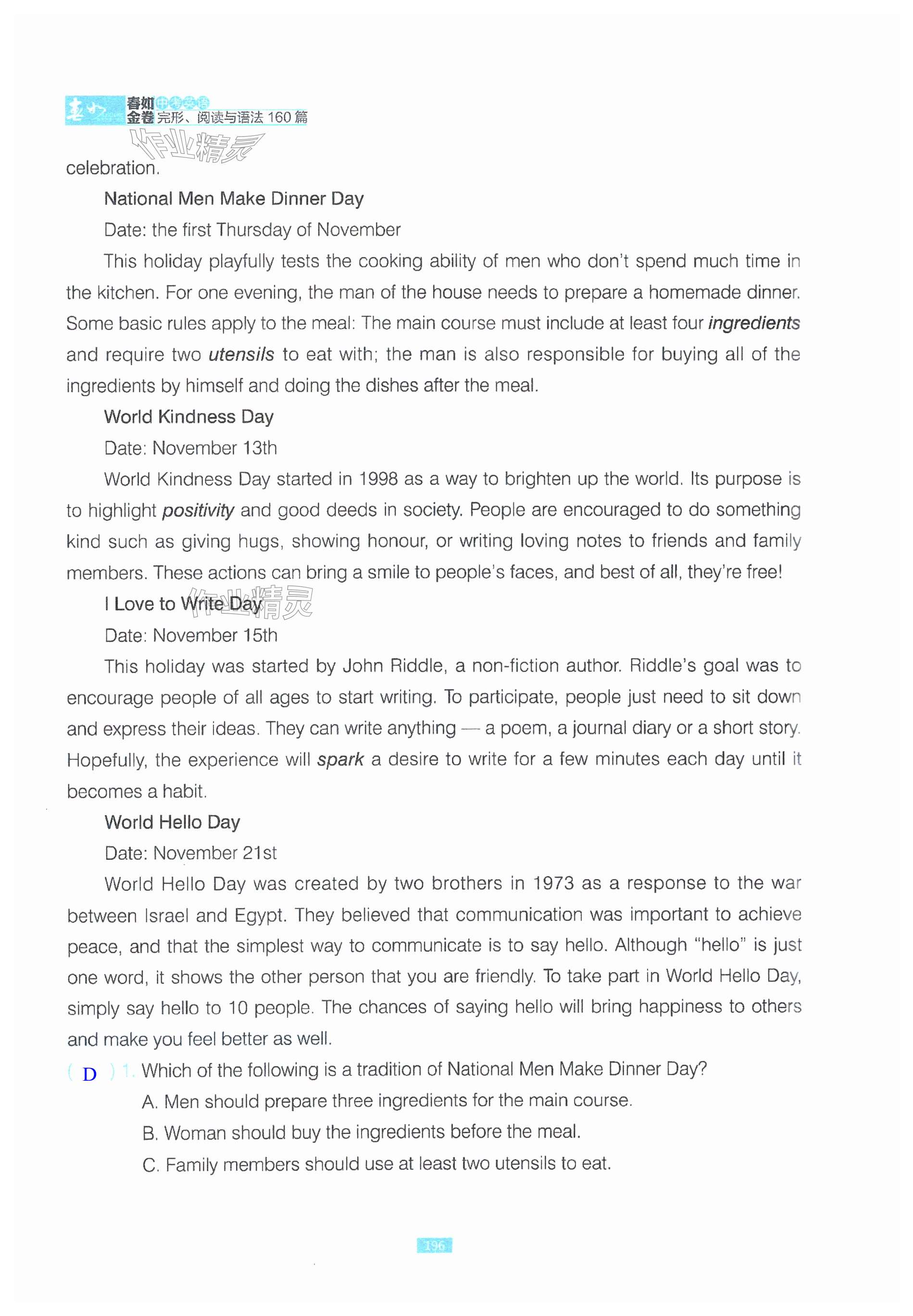 注:目前有些书本章节名称可能整理的还不是很完善,但都是按照顺序排列的,请同学们按照顺序仔细查找。练习册 2024年春如金卷英语中考完形阅读与语法160篇 答案主要是用来给同学们做完题方便对答案用的,请勿直接抄袭。