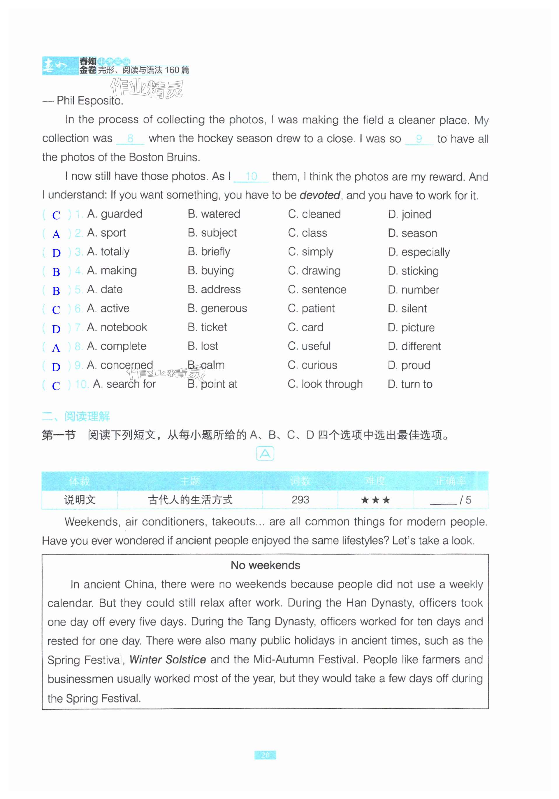 注:目前有些书本章节名称可能整理的还不是很完善,但都是按照顺序排列的,请同学们按照顺序仔细查找。练习册 2024年春如金卷英语中考完形阅读与语法160篇 答案主要是用来给同学们做完题方便对答案用的,请勿直接抄袭。