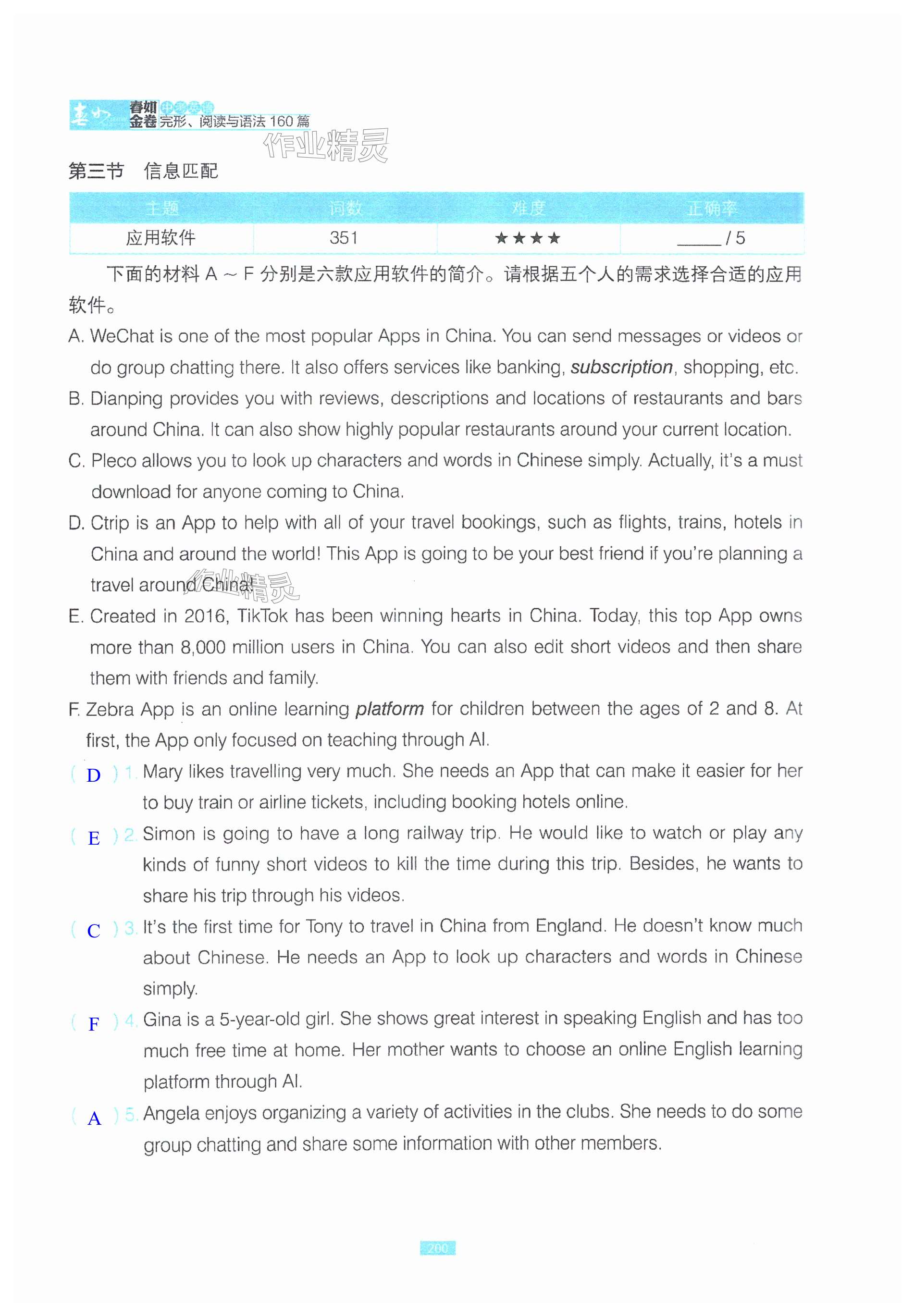 注:目前有些书本章节名称可能整理的还不是很完善,但都是按照顺序排列的,请同学们按照顺序仔细查找。练习册 2024年春如金卷英语中考完形阅读与语法160篇 答案主要是用来给同学们做完题方便对答案用的,请勿直接抄袭。