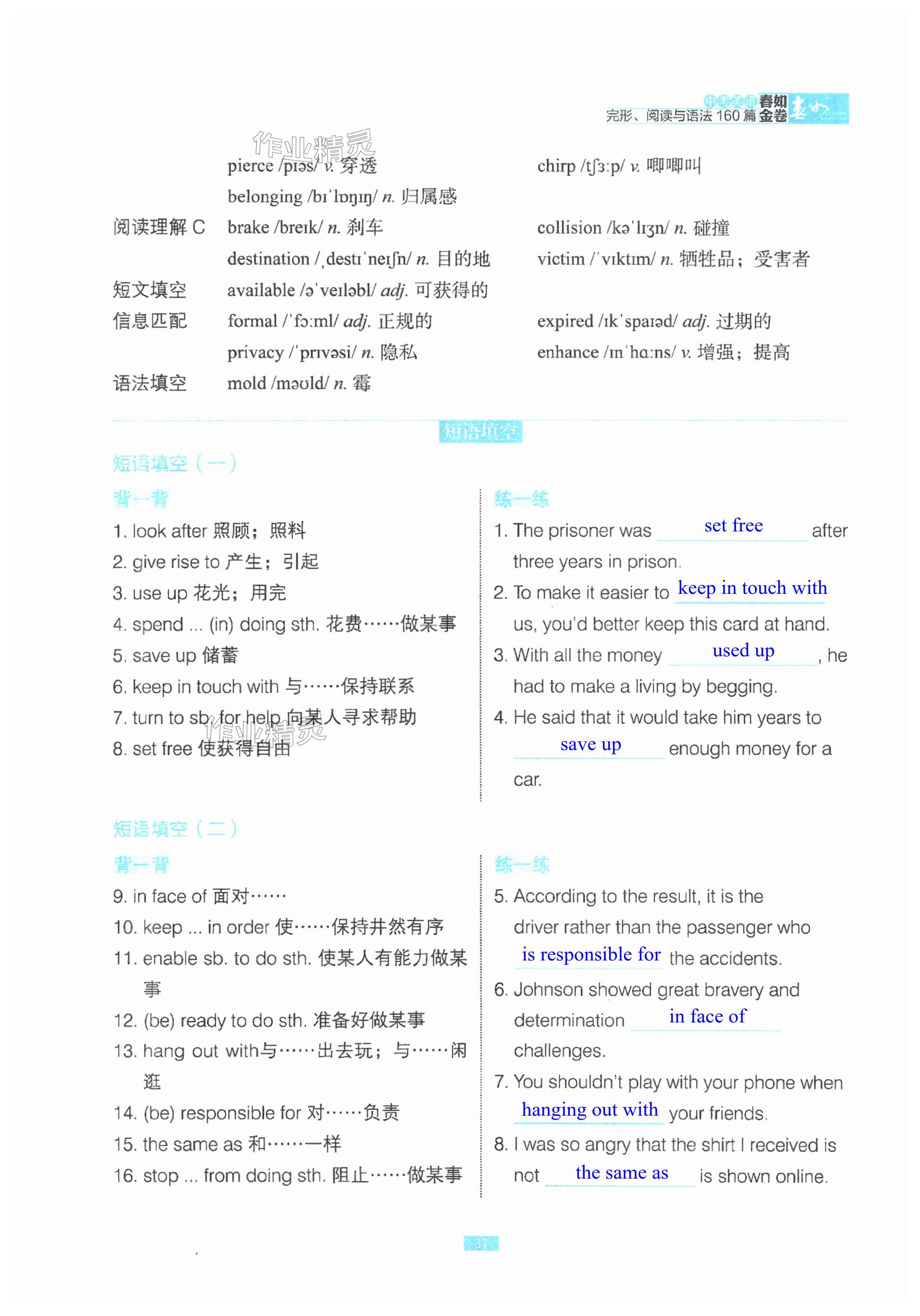 注:目前有些书本章节名称可能整理的还不是很完善,但都是按照顺序排列的,请同学们按照顺序仔细查找。练习册 2024年春如金卷英语中考完形阅读与语法160篇 答案主要是用来给同学们做完题方便对答案用的,请勿直接抄袭。