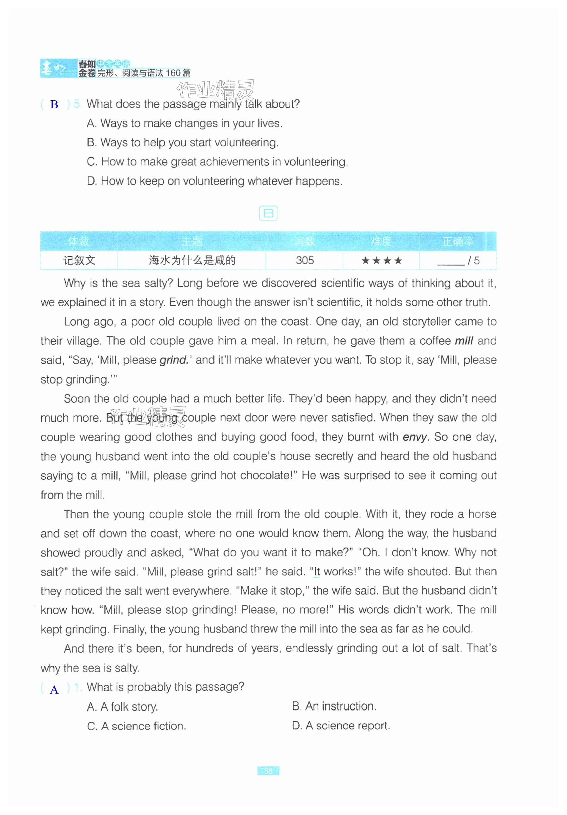 注:目前有些书本章节名称可能整理的还不是很完善,但都是按照顺序排列的,请同学们按照顺序仔细查找。练习册 2024年春如金卷英语中考完形阅读与语法160篇 答案主要是用来给同学们做完题方便对答案用的,请勿直接抄袭。