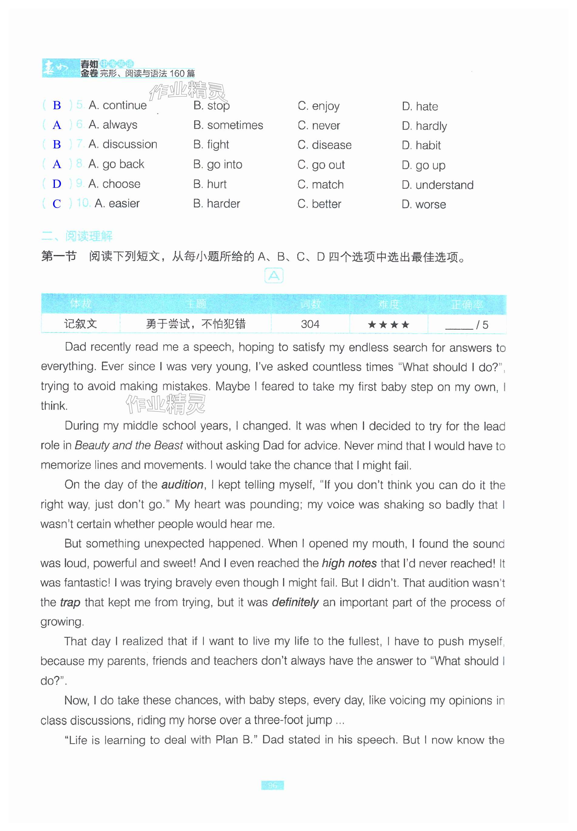 注:目前有些书本章节名称可能整理的还不是很完善,但都是按照顺序排列的,请同学们按照顺序仔细查找。练习册 2024年春如金卷英语中考完形阅读与语法160篇 答案主要是用来给同学们做完题方便对答案用的,请勿直接抄袭。