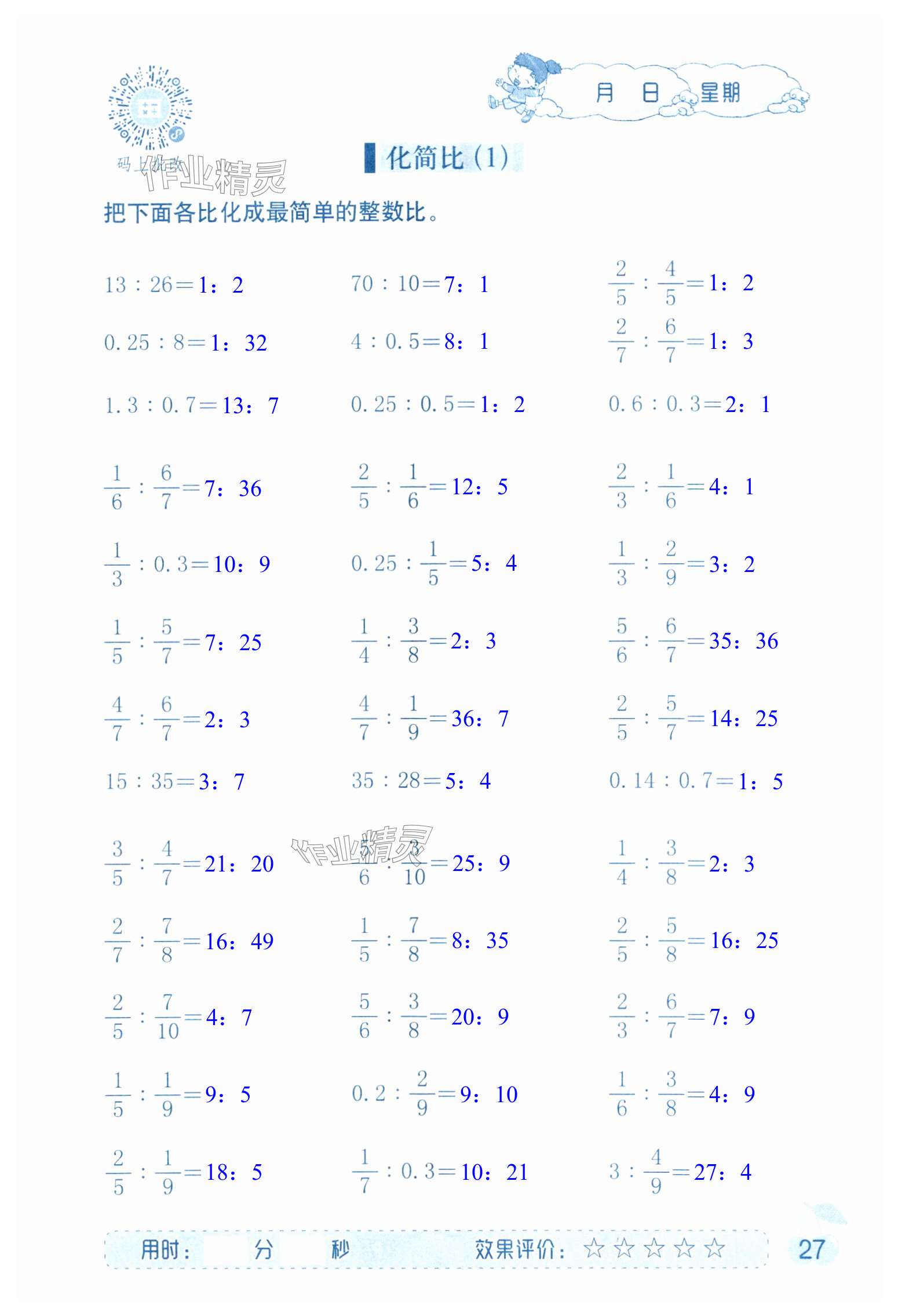 《2023年同步口算海燕出版社六年级数学上册人教版》