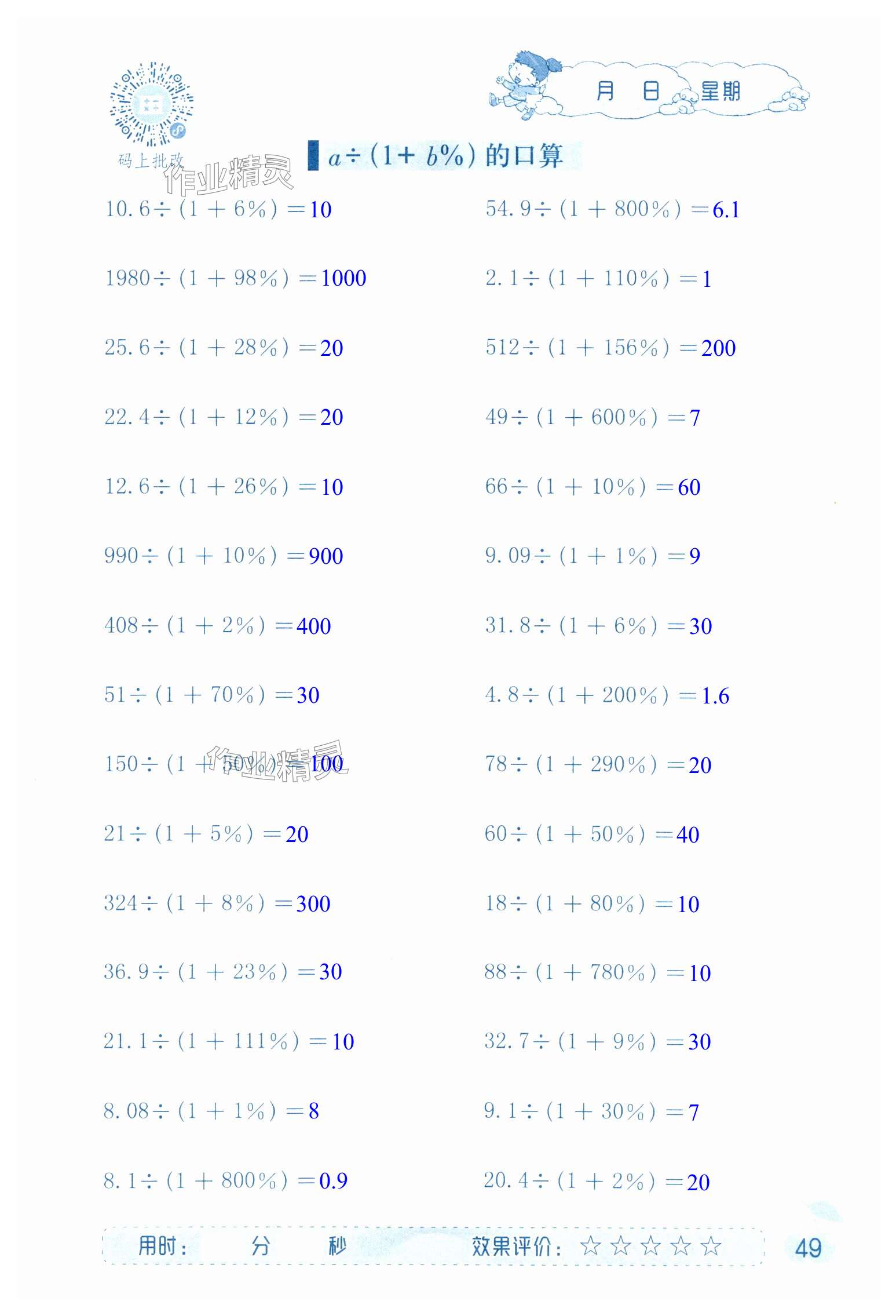 《2023年同步口算海燕出版社六年级数学上册人教版》