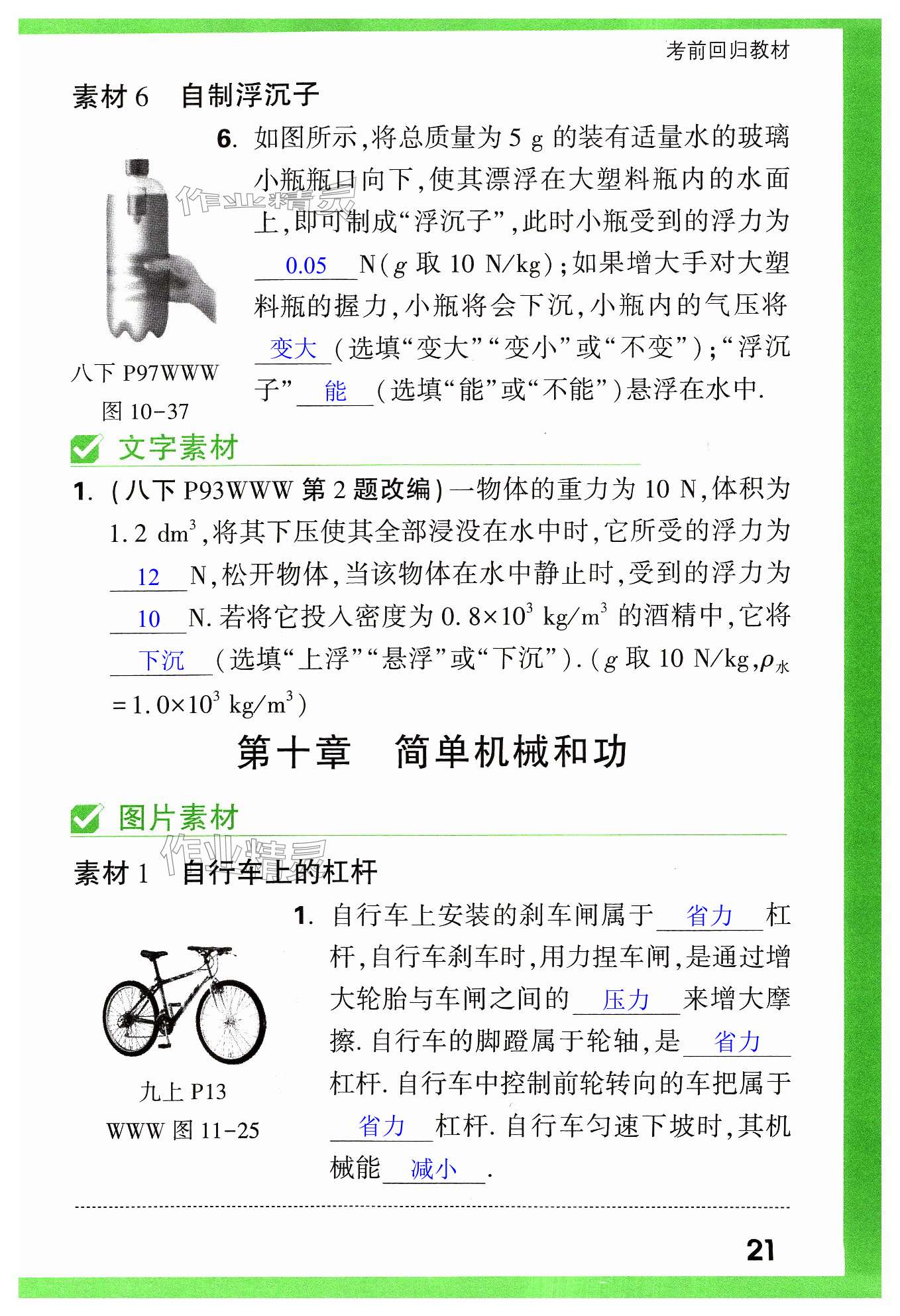 注:目前有些书本章节名称可能整理的还不是很完善,但都是按照顺序排列的,请同学们按照顺序仔细查找。练习册 2024年万唯中考试题研究九年级物理苏科版江苏专版 答案主要是用来给同学们做完题方便对答案用的,请勿直接抄袭。