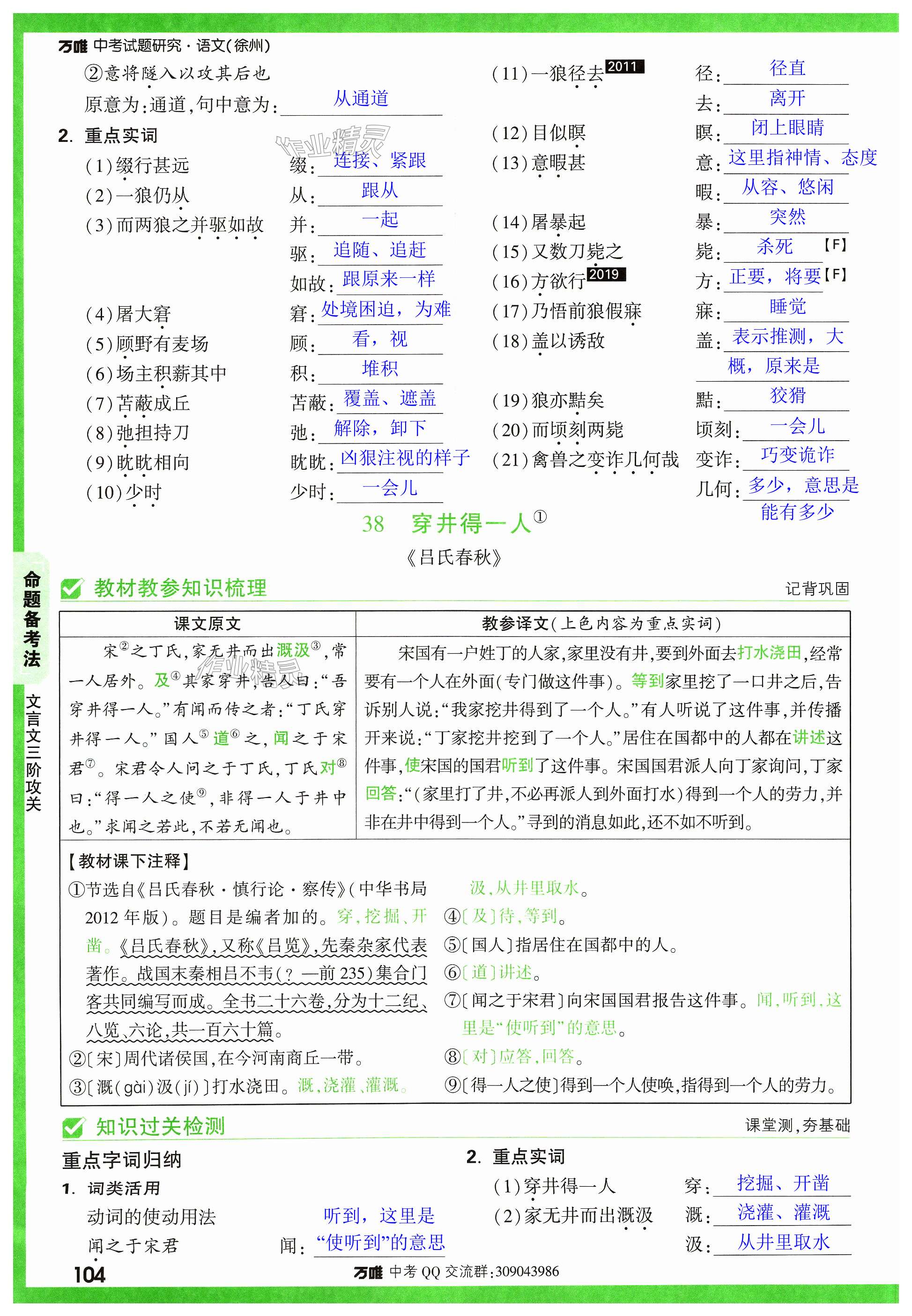 注:目前有些书本章节名称可能整理的还不是很完善,但都是按照顺序排列的,请同学们按照顺序仔细查找。练习册 2024年万唯中考试题研究语文徐州专版 答案主要是用来给同学们做完题方便对答案用的,请勿直接抄袭。
