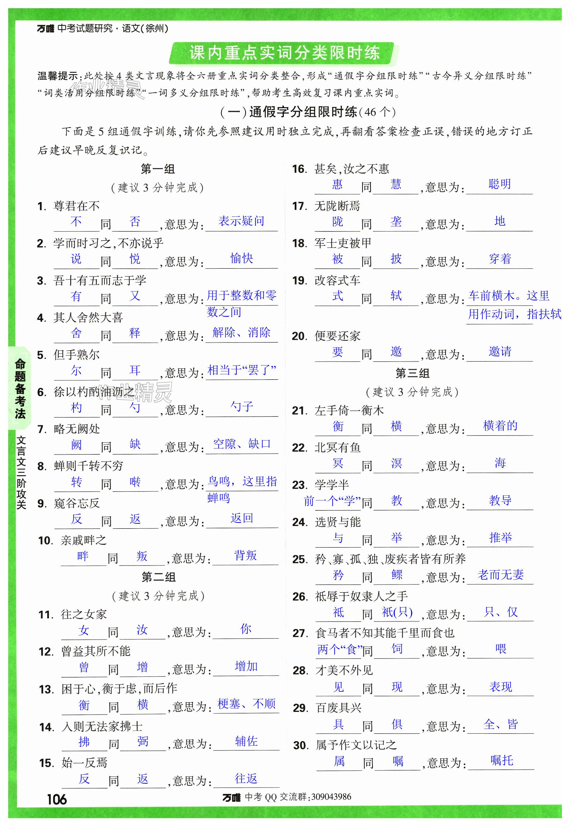 注:目前有些书本章节名称可能整理的还不是很完善,但都是按照顺序排列的,请同学们按照顺序仔细查找。练习册 2024年万唯中考试题研究语文徐州专版 答案主要是用来给同学们做完题方便对答案用的,请勿直接抄袭。