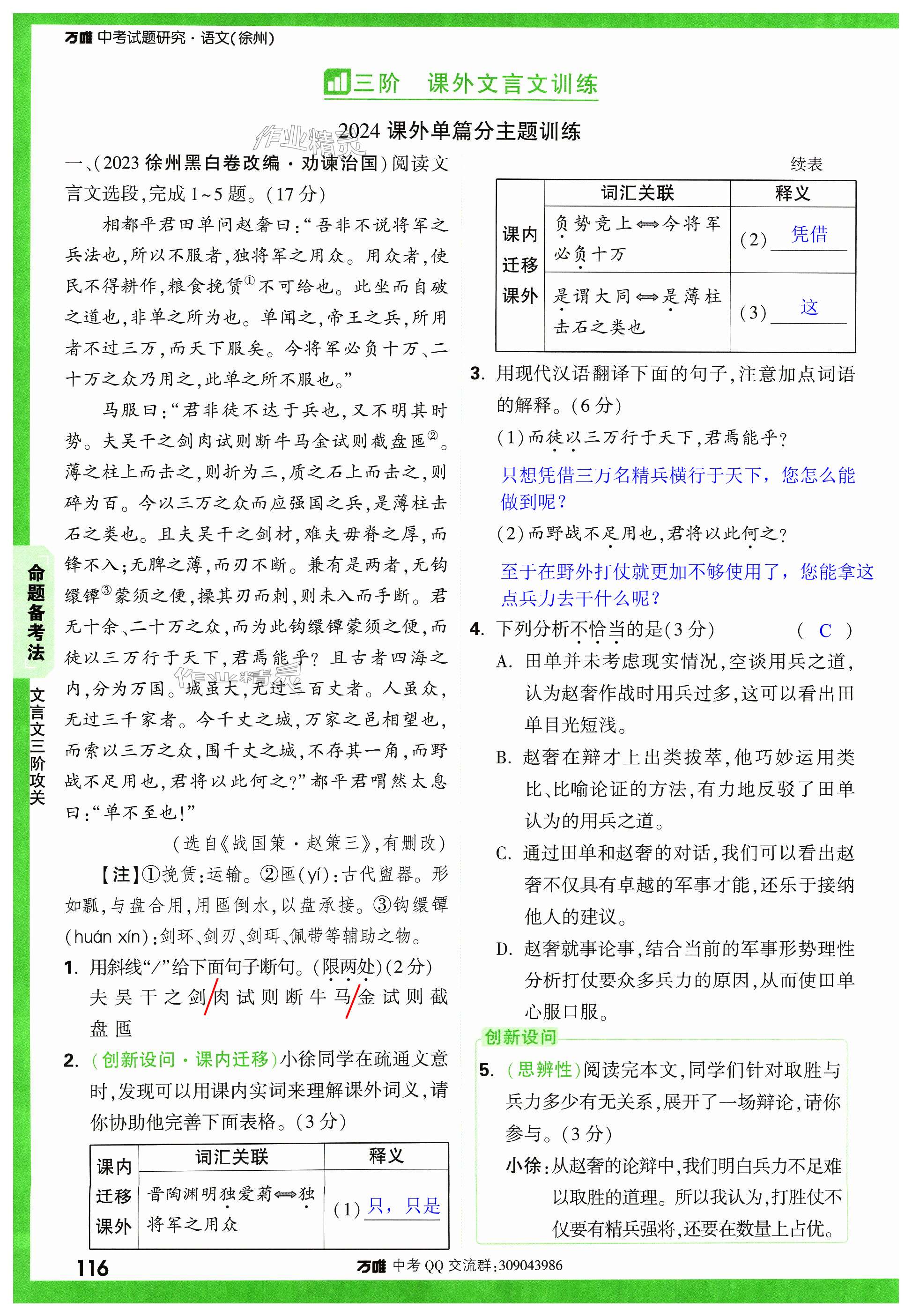 注:目前有些书本章节名称可能整理的还不是很完善,但都是按照顺序排列的,请同学们按照顺序仔细查找。练习册 2024年万唯中考试题研究语文徐州专版 答案主要是用来给同学们做完题方便对答案用的,请勿直接抄袭。