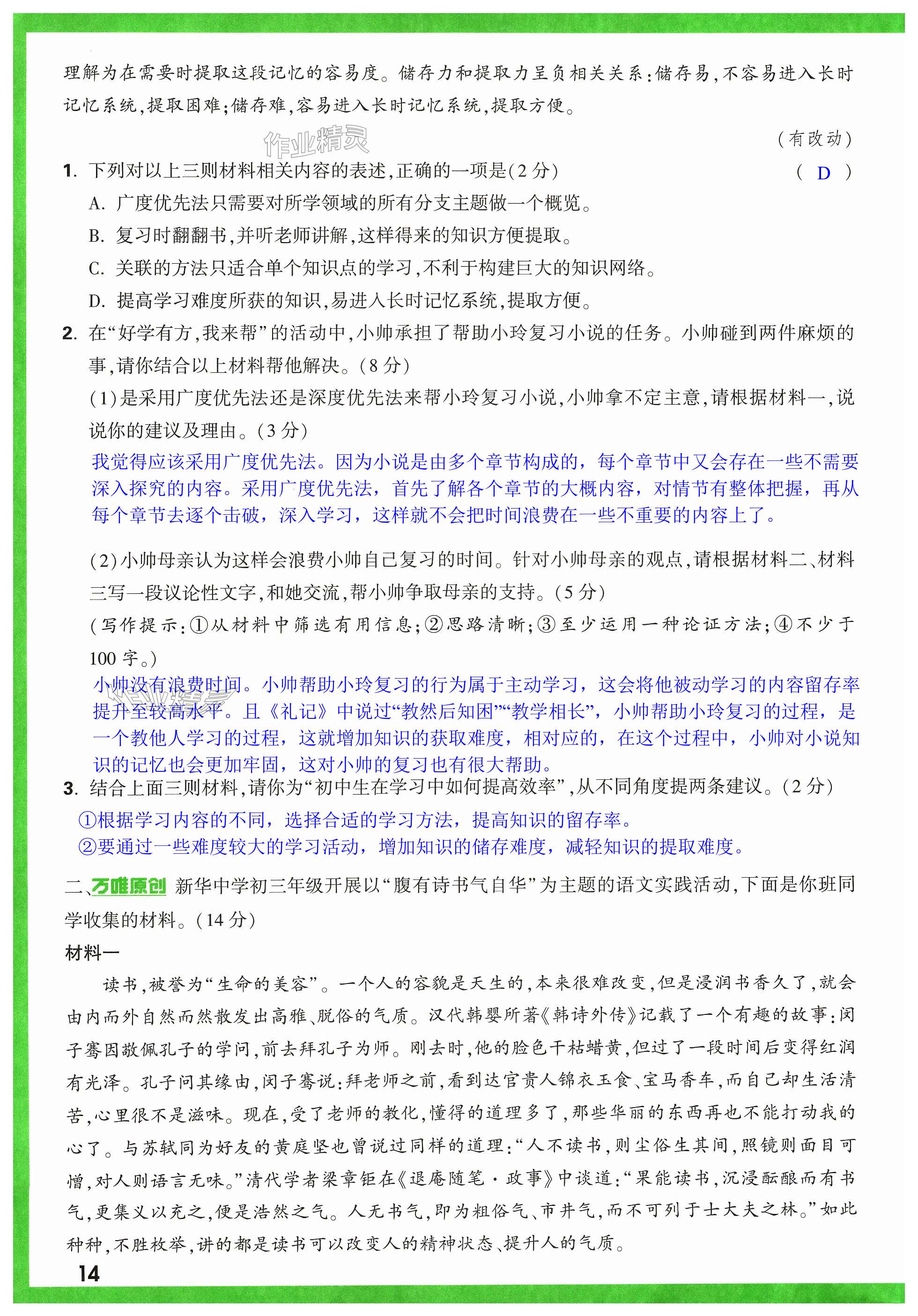注:目前有些书本章节名称可能整理的还不是很完善,但都是按照顺序排列的,请同学们按照顺序仔细查找。练习册 2024年万唯中考试题研究语文徐州专版 答案主要是用来给同学们做完题方便对答案用的,请勿直接抄袭。