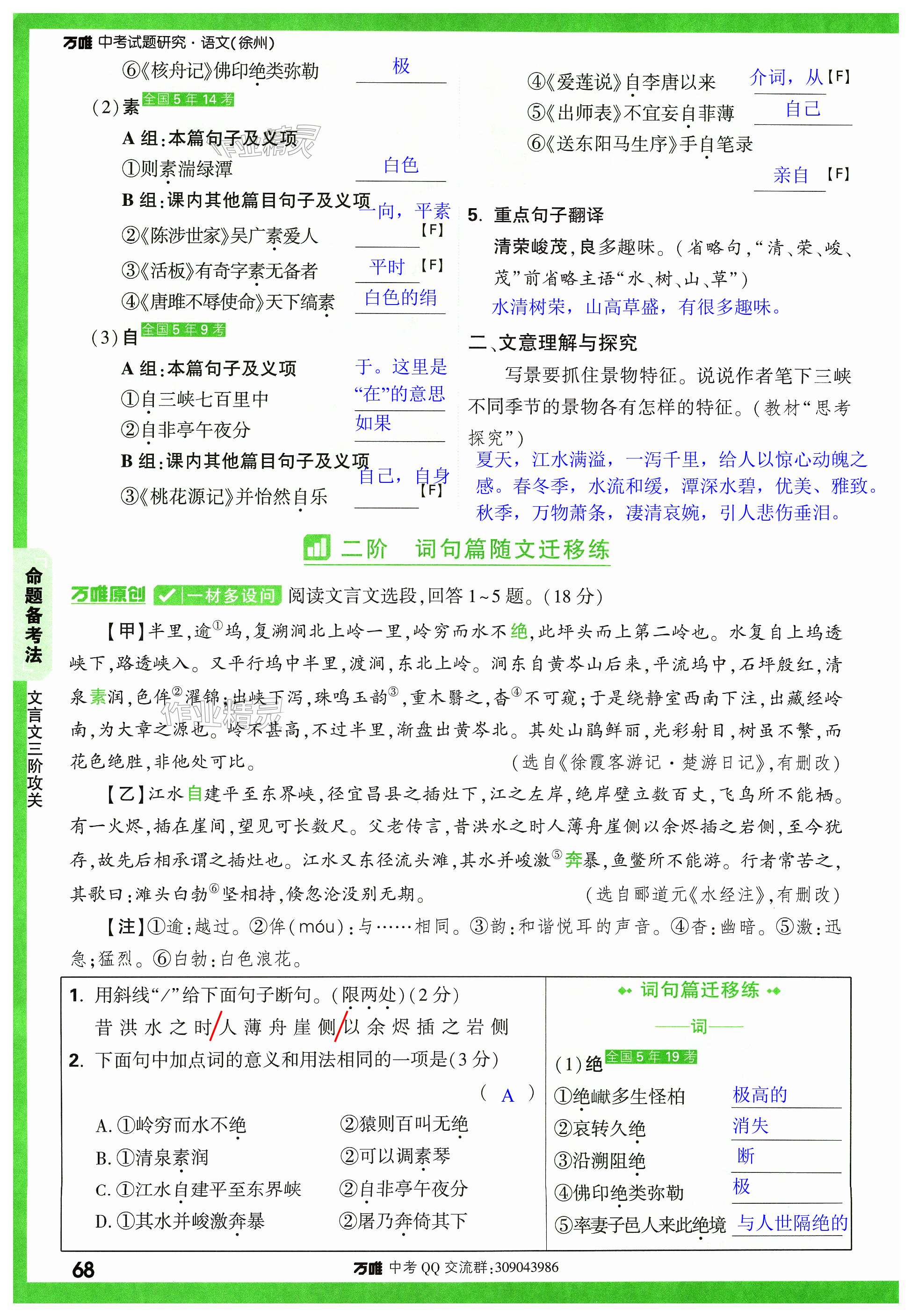 注:目前有些书本章节名称可能整理的还不是很完善,但都是按照顺序排列的,请同学们按照顺序仔细查找。练习册 2024年万唯中考试题研究语文徐州专版 答案主要是用来给同学们做完题方便对答案用的,请勿直接抄袭。