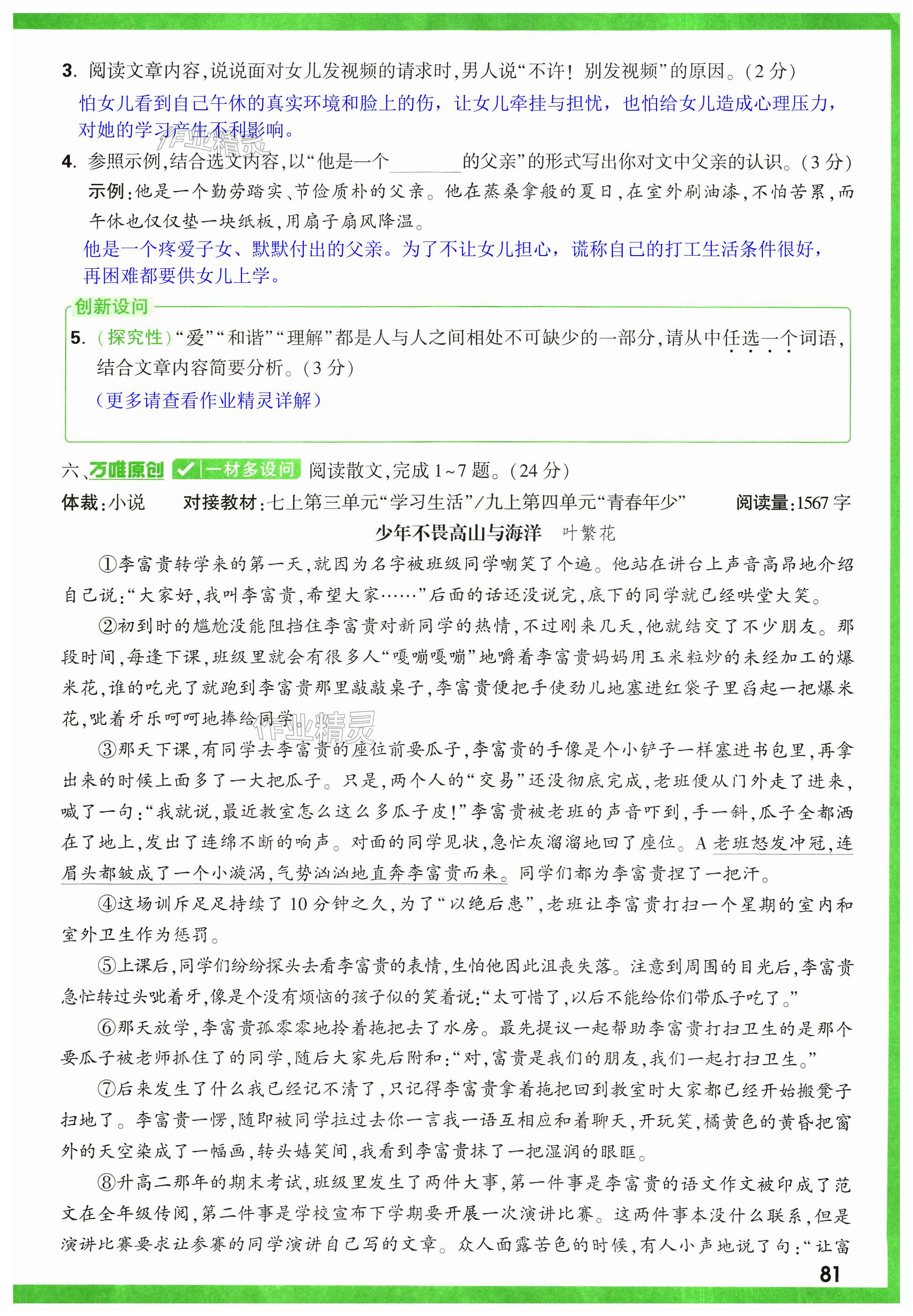 注:目前有些书本章节名称可能整理的还不是很完善,但都是按照顺序排列的,请同学们按照顺序仔细查找。练习册 2024年万唯中考试题研究语文徐州专版 答案主要是用来给同学们做完题方便对答案用的,请勿直接抄袭。