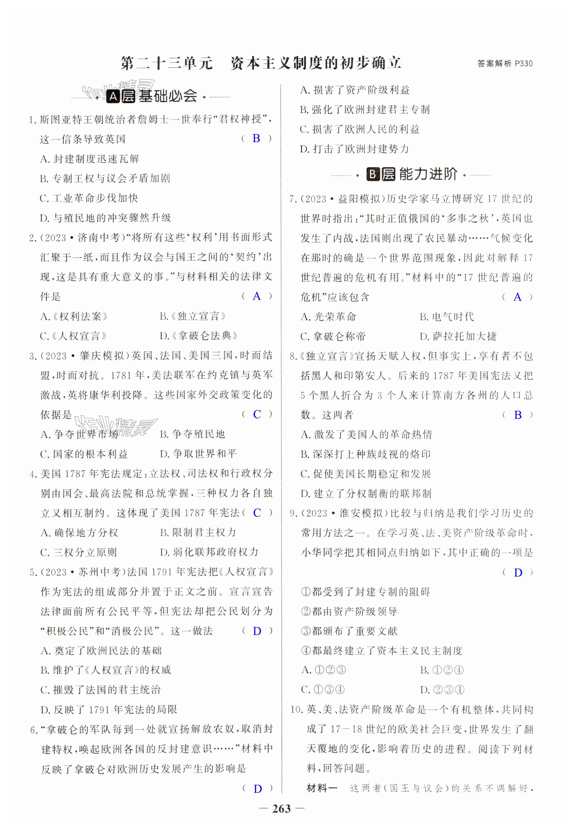 注:目前有些书本章节名称可能整理的还不是很完善,但都是按照顺序排列的,请同学们按照顺序仔细查找。练习册 2024年世纪金榜初中全程复习方略历史 答案主要是用来给同学们做完题方便对答案用的,请勿直接抄袭。