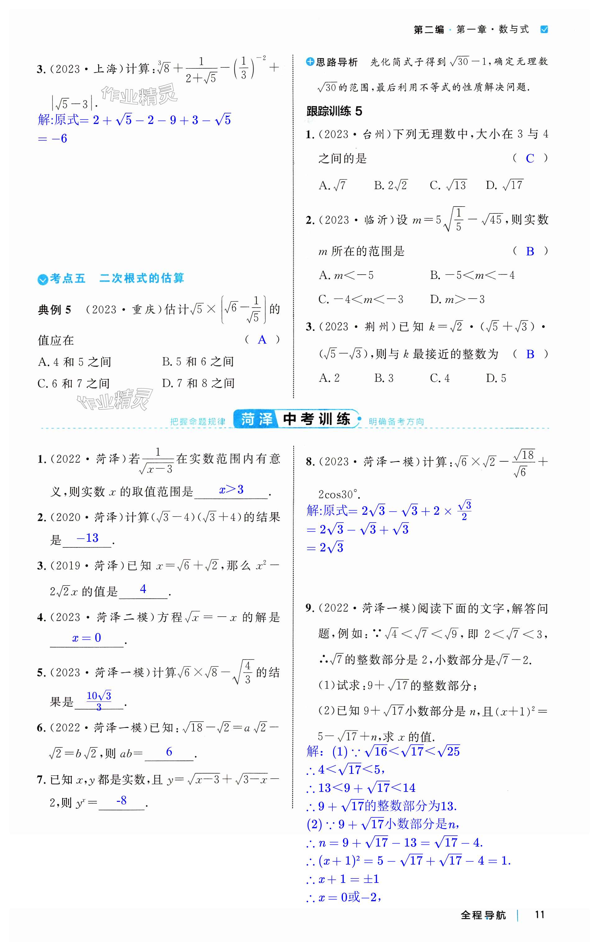注:目前有些书本章节名称可能整理的还不是很完善,但都是按照顺序排列的,请同学们按照顺序仔细查找。练习册 2024年全程导航初中总复习数学菏泽专版 答案主要是用来给同学们做完题方便对答案用的,请勿直接抄袭。