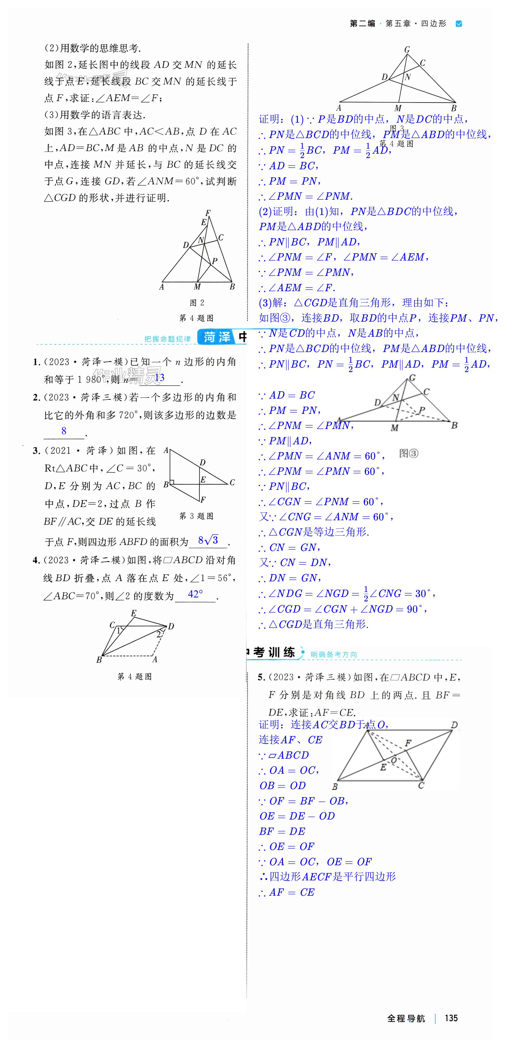 注:目前有些书本章节名称可能整理的还不是很完善,但都是按照顺序排列的,请同学们按照顺序仔细查找。练习册 2024年全程导航初中总复习数学菏泽专版 答案主要是用来给同学们做完题方便对答案用的,请勿直接抄袭。