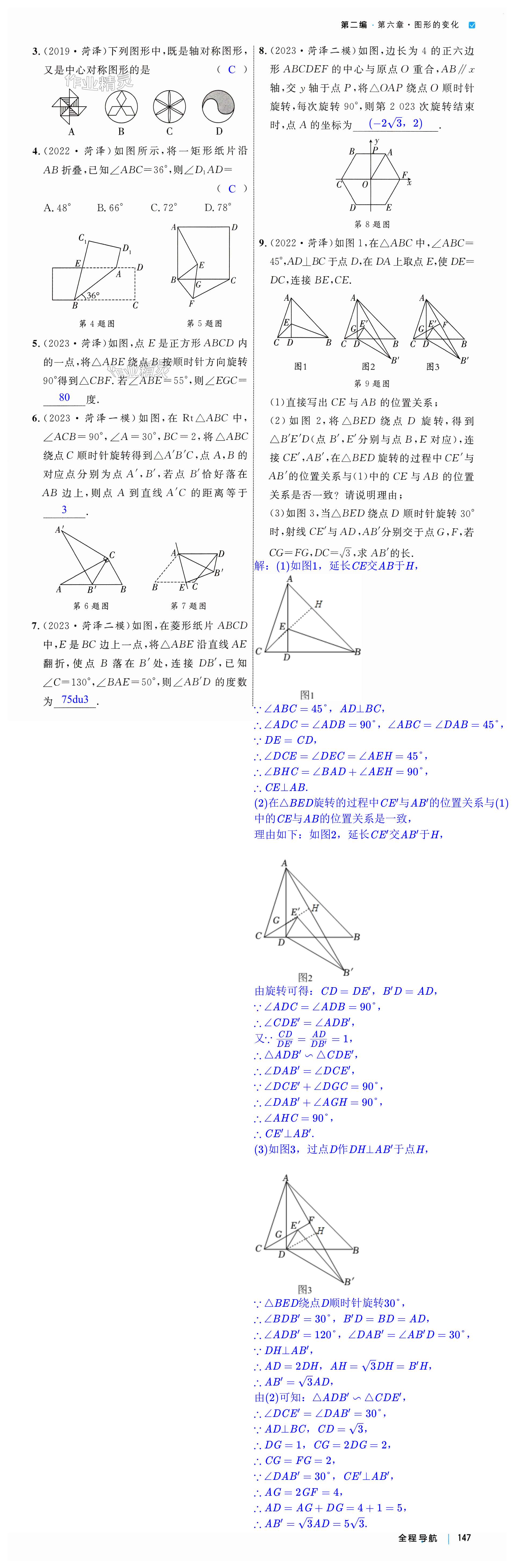 注:目前有些书本章节名称可能整理的还不是很完善,但都是按照顺序排列的,请同学们按照顺序仔细查找。练习册 2024年全程导航初中总复习数学菏泽专版 答案主要是用来给同学们做完题方便对答案用的,请勿直接抄袭。