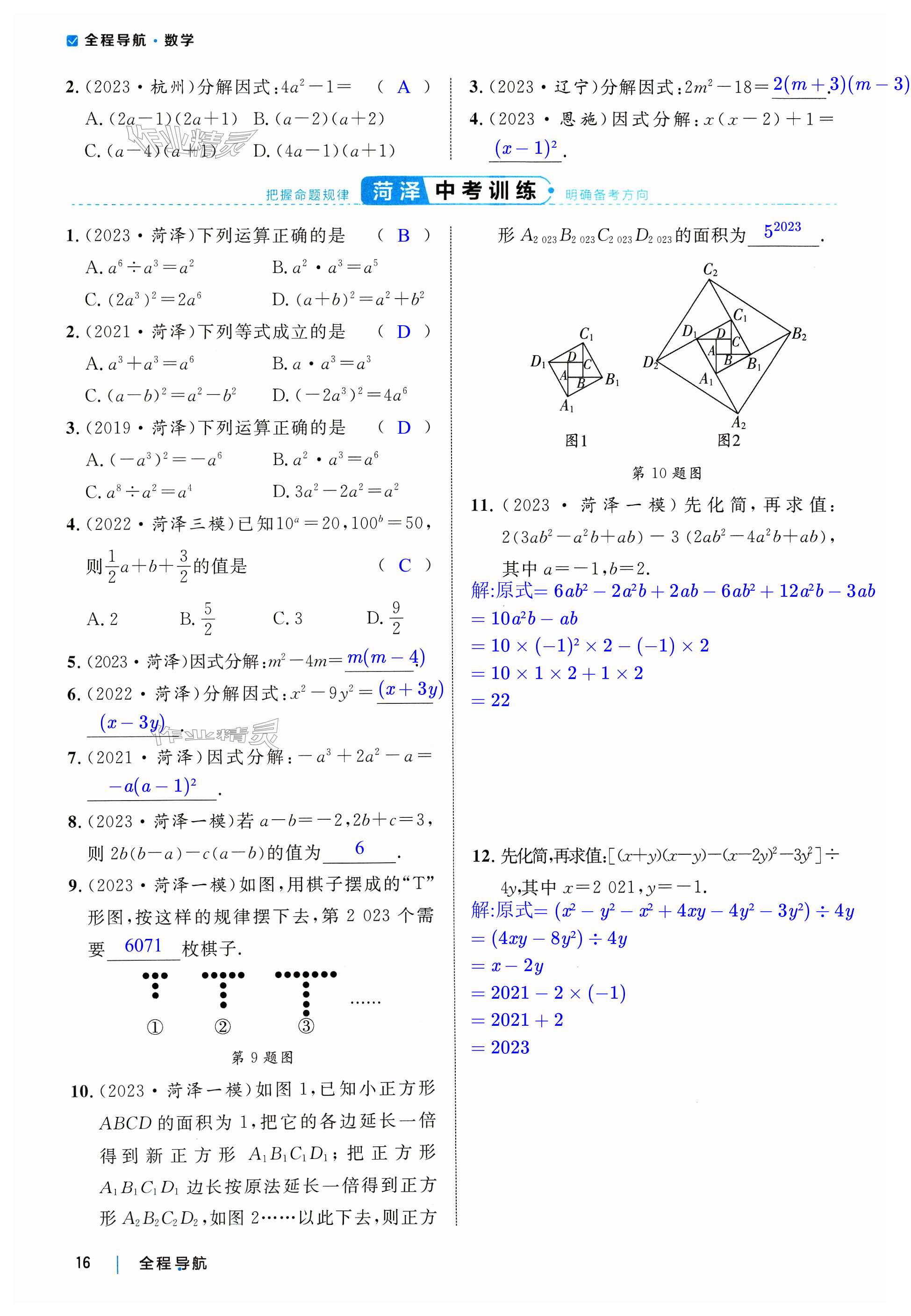 注:目前有些书本章节名称可能整理的还不是很完善,但都是按照顺序排列的,请同学们按照顺序仔细查找。练习册 2024年全程导航初中总复习数学菏泽专版 答案主要是用来给同学们做完题方便对答案用的,请勿直接抄袭。