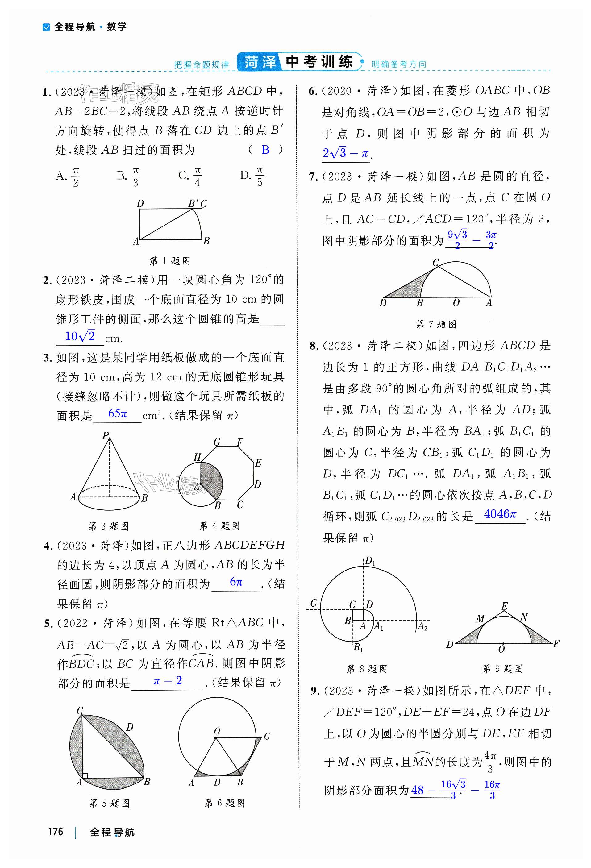 注:目前有些书本章节名称可能整理的还不是很完善,但都是按照顺序排列的,请同学们按照顺序仔细查找。练习册 2024年全程导航初中总复习数学菏泽专版 答案主要是用来给同学们做完题方便对答案用的,请勿直接抄袭。