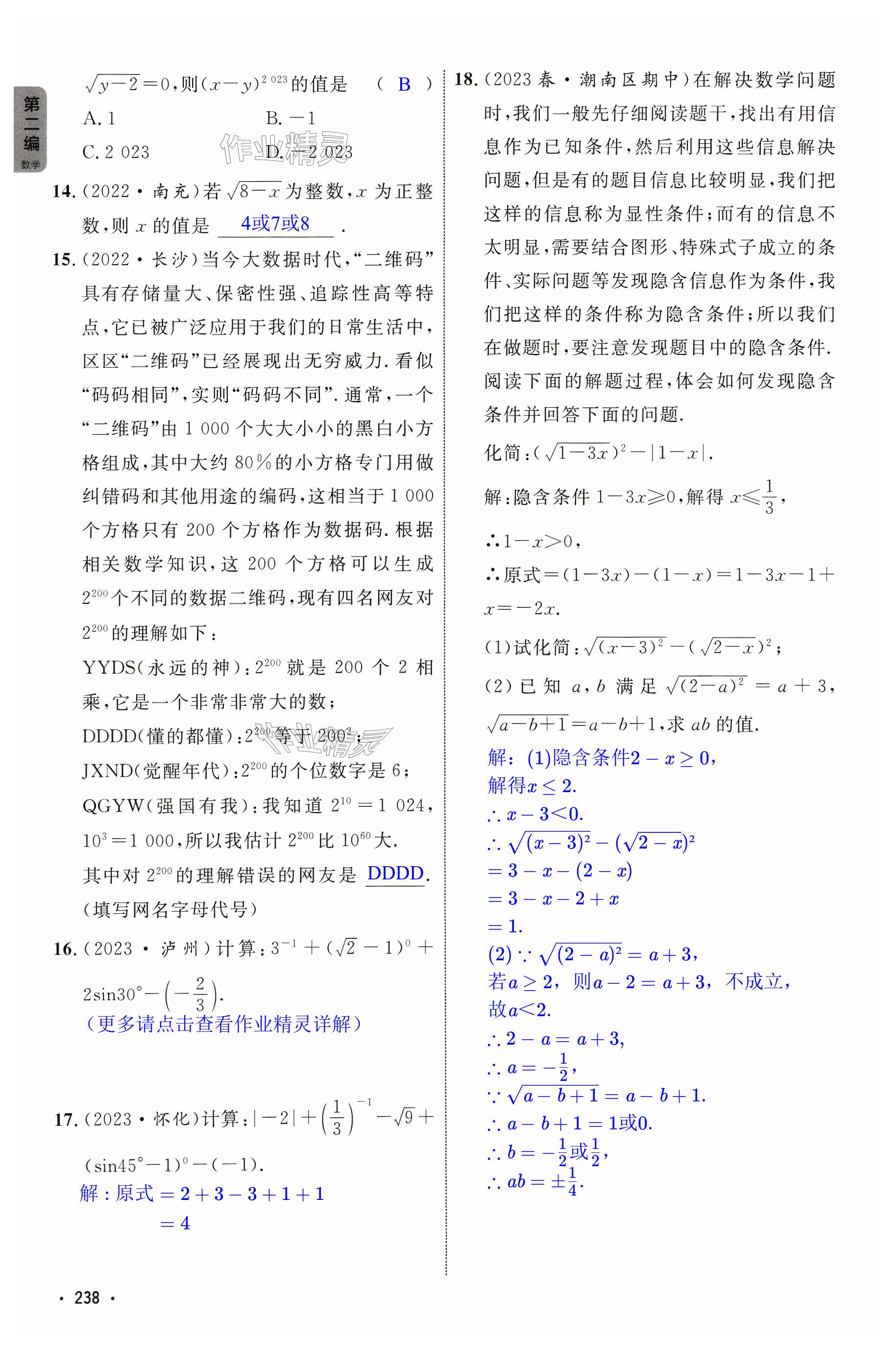 注:目前有些书本章节名称可能整理的还不是很完善,但都是按照顺序排列的,请同学们按照顺序仔细查找。练习册 2024年全程导航初中总复习数学菏泽专版 答案主要是用来给同学们做完题方便对答案用的,请勿直接抄袭。